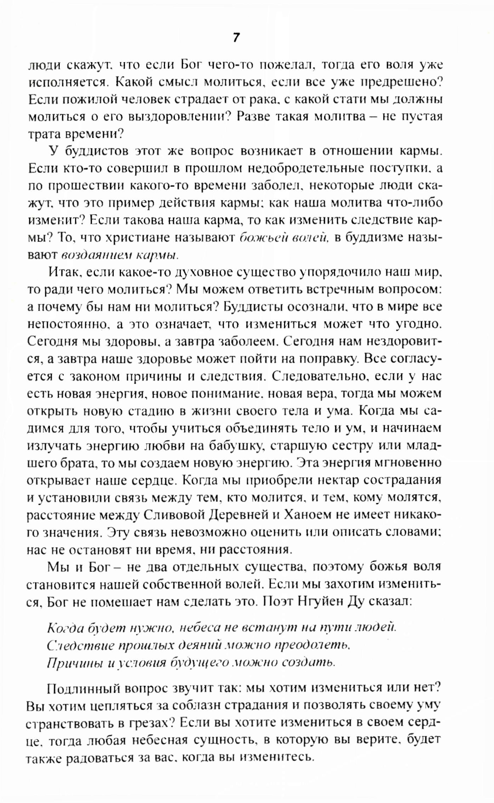 Тик Нат Хаи - знаменитый вьетнамский буддистский мастер, поэт, ученый и активный защитник прав человека. Книга «Энергия молитвы» рассказывает о пользе молитвы в обыденной жизни. Тик Нат Хан показывает, как энергии молитвы и медитации позволяют нам восстановить связь с высшей реальностью и помогают нам осуществить нашу главную потребность: соединиться со всем миром в единое целое. Вторая часть книги представляет из себя запись лекций, посвященных примирению израильтян и палестинцев; они были организованы в 2003 году в Сливовой Деревне, где в последние годы проживает мастер Тик Нат Хан. Он со свойственным ему состраданием и тонким пониманием показывает, как следует применять древние учения в современном мире. Он сосредоточивается на прямом распознавании и внимательном исследовании природы наших чувств и ощущений. По его словам, качество нашей жизни зависит от качества семян в наших умах. Буддизм учит нас взращивать семена радости и преображать семена страдания, чтобы в нас могли распуститься цветы понимания, любви и сострадания.| Издательство | ИПЛ |