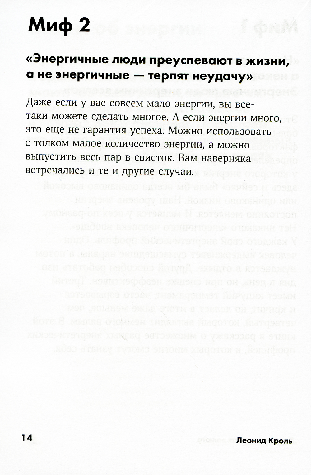Жизненная энергия человека - валюта нашего времени. У кого ее больше, тот успевает больше сделать, заряжен позитивом и хорошим настроением, притягивает к себе людей и интересные проекты. Все хотят иметь больше энергии, быть в потоке, который не иссякает. Леонид Кроль - профессор Высшей школы экономики с 25-летним опытом работы коучем и бизнес-тренером, директор Института групповой и семейной психологии и психотерапии - рассказывает о проблемах с энергией, а также показывает, как управлять ею, используя то, что заложено природой в конкретном человеке. В каждой главе - кейсы из реальной практики, фрагменты коучинговых бесед, а в конце книги - приложение с 12 энергетическими профилями, которые помогут вам узнать о себе много полезного и правильно начать работу по балансировке жизненных сил.| Издательство | Альпина Паблишер |