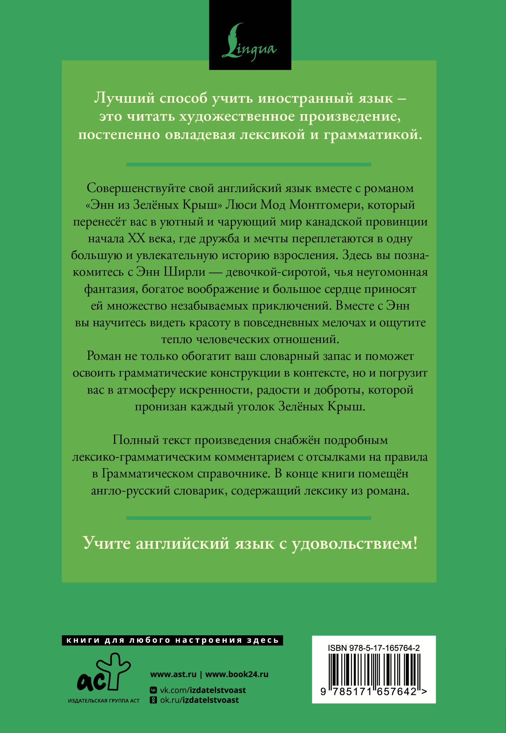 Лучший способ учить иностранный язык - это читать художественное произведение, постепенно овладевая лексикой и грамматикой. Совершенствуйте свой английский язык вместе с романом "Энн из Зеленых крыш" Люси Мод Монтгомери, который перенесёт вас в уютный и чарующий мир канадской провинции начала XX века, где дружба и мечты переплетаются в одну большую и увлекательную историю взросления. Здесь вы познакомитесь с Энн Ширли -девочкой-сиротой, чья неугомонная фантазия, богатое воображение и большое сердце приносят ей множество незабываемых приключений. Вместе с Энн вы научитесь видеть красоту в повседневных мелочах и ощутите тепло человеческих отношений. Роман не только обогатит ваш словарный запас и поможет освоить грамматические конструкции в контексте, но и погрузит вас в атмосферу искренности, радости и доброты, которой пронизан каждый уголок Зеленых Мезонинов. Полный текст произведения снабжён подробным лексико-грамматическим комментарием с отсылками на правила в Грамматическом справочнике. В конце книги помещён англо-русский словарик, содержащий лексику из романа. Издание предназначено для всех, кто учит английский язык и стремится читать книги в оригинале.| Издательство | Издательство "АСТ" |