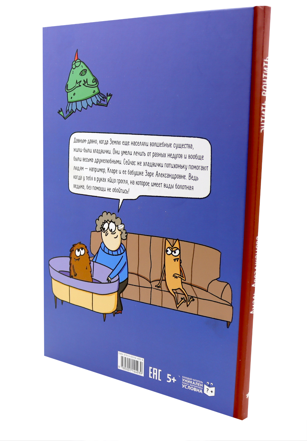 Давным-давно, когда Землю еще населяли волшебные существа, жили-были хладвички. Они умели лечить от разных недугов и вообще были весьма дружелюбными. Сейчас же хладвички стараются не показываться на глаза людям, но потихоньку им помогают - например, Кларе и ее бабушке Заре Александровне. Ведь когда у тебя в руках яйцо грогля, на которое имеет виды болотная ведьма, без помощи не обойтись! Спасти мир героям помогут ухошляпа, батончик из кабачка, лысая кошка и, конечно же, дружба.| Издательство | Белая ворона/ALBUS CORVUS |