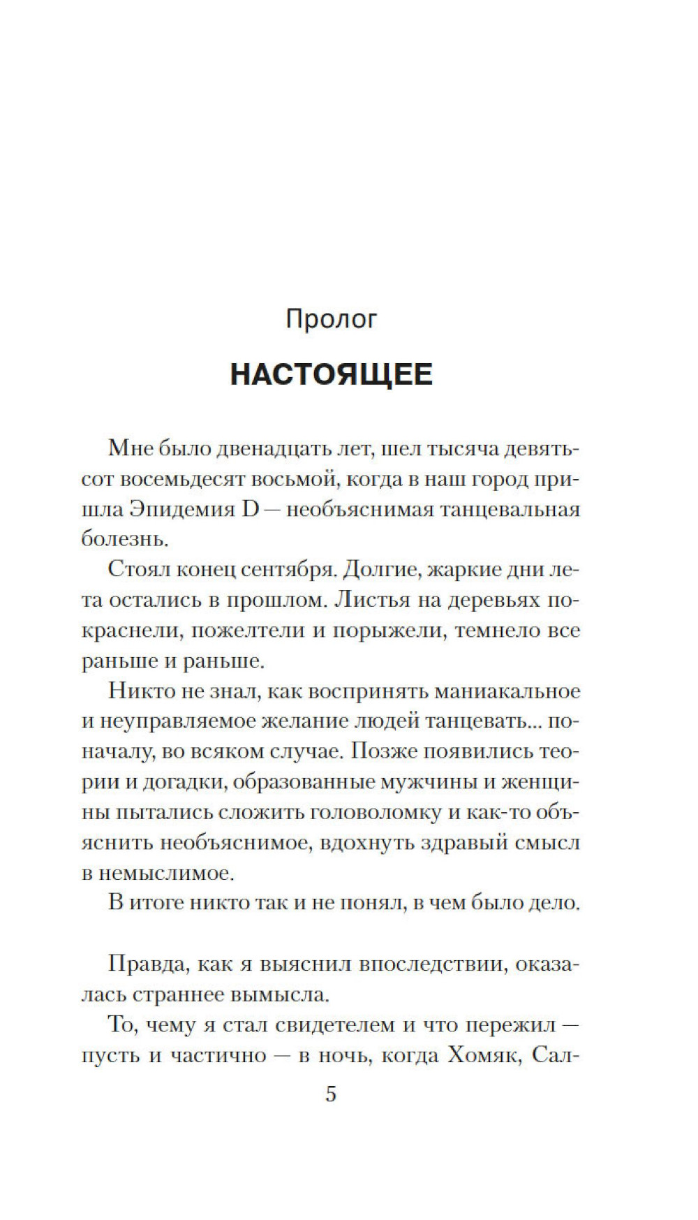 В XVI веке сотни жителей Страсбурга в Эльзасе танцевали целыми днями, не в силах остановиться, и многие падали замертво от истощения. Почти четыреста лет спустя танцевальная эпидемия возвращается, на этот раз в тихий курортный городок на Кейп-Коде. Полиция в замешательстве, в городке расползаются панические слухи, бедствие принимает такие масштабы, что привлекает интерес национальной прессы. А для двенадцатилетнего Бена Грейвса и двух его друзей необъяснимая танцевальная болезнь - лишь предвестник грядущего ужаса.