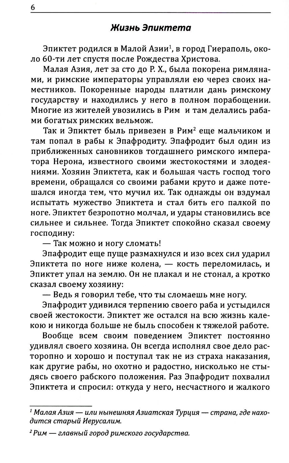Перед вами репринт книги 1911 года, в которой излагаются основные идеи философии Эпиктета и описывается его жизненный путь. Мудрец Эпиктет говорил: «Есть возможность жить без всяких огорчений и волнений. Люди огорчаются только тогда, когда случается то, чего они боялись. Ты же ничего не бойся, никому не завидуй, живи спокойно, желай только того, что в твоей воле, что честно и что у тебя под рукой. А то, что тебе выпадает на долю по воле других, принимай как дар добрых людей и пользуйся им настолько, насколько необходимо для поддержания жизни, но не привязывайся к этому так сильно, как животные». Уверены, что эта поучительная книга будет актуальна спустя еще не одно столетие.| Издательство | Амрита-Русь |