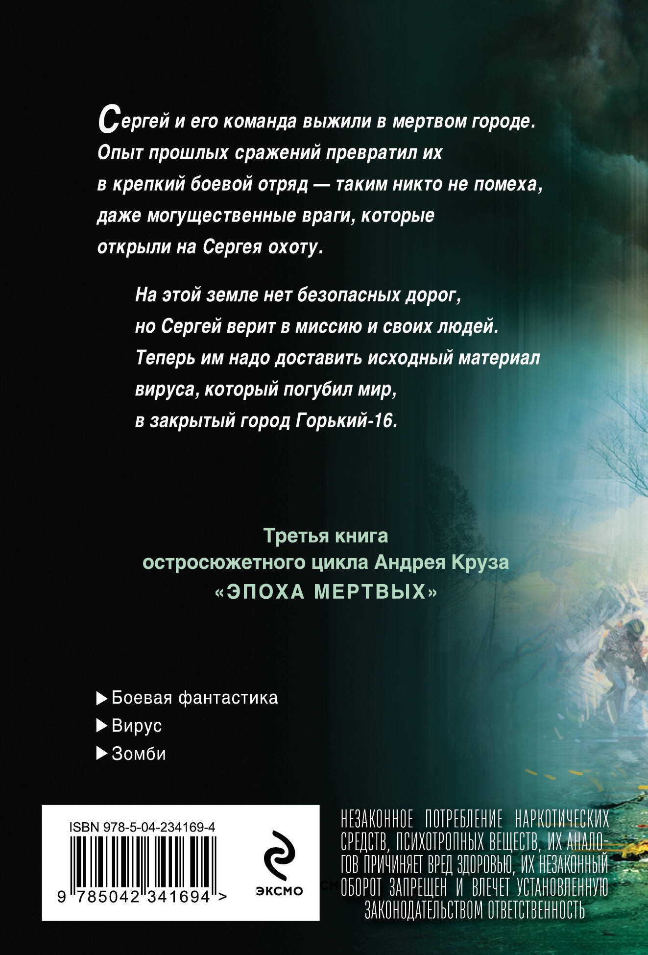 НЕЗАКОННОЕ ПОТРЕБЛЕНИЕ НАРКОТИЧЕСКИХ СРЕДСТВ, ПСИХОТРОПНЫХ ВЕЩЕСТВ, ИХ АНАЛОГОВ ПРИЧИНЯЕТ ВРЕД ЗДОРОВЬЮ, ИХ НЕЗАКОННЫЙ ОБОРОТ ЗАПРЕЩЕН И ВЛЕЧЕТ УСТАНОВЛЕННУЮ ЗАКОНОДАТЕЛЬСТВОМ ОТВЕТСТВЕННОСТЬ. Для Сергея Крамцова и его соратников настало время покинуть мертвый город, в который превратилась Москва. Теперь для них главной задачей стала доставка исходного материала вируса, погубившего мир, в закрытый город Горький-16. Путь предстоит нелегкий. За Крамцовым охотятся могущественные враги, но он верит в себя и своих людей…| Издательство | ООО "Издательство "Эксмо" |