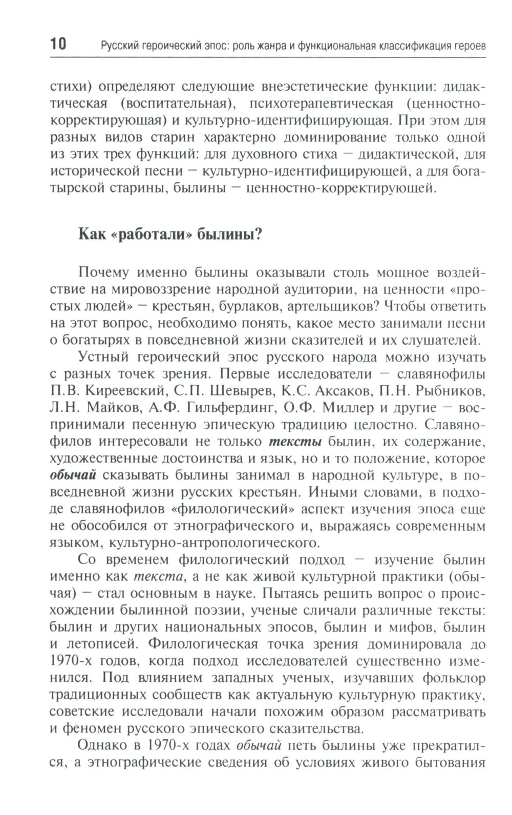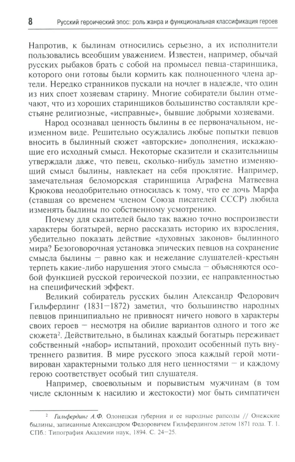 Автор исследует все известные науке записи русских эпических песен, выявляет ценности, мотивирующие былинных героев, - и на этом основании реконструирует исходные смыслы богатырского эпоса русских. Ценностный анализ былин свидетельствует: опытный эпический певец вводил слушателя в былинный мир, подбирая ему эпического двойника со сходным характером и тем самым как бы указывая своему современнику должное место за пиршественным столом князя Владимира. О дарованиях и духовных проблемах слушателя сказитель мог судить по особым приметам в его внешности и поведении (мимика и взгляд, жестикуляция, характерные реакции на услышанное). Таким образом, былина звучала с целью произвести предсказуемый (впрочем, зависящий от ситуации) эффект на аудиторию. Задача певца заключалась в том, чтобы скорректировать - девальвировать или укрепить - ценности, актуальные для слушателя. Для широкого круга читателей.