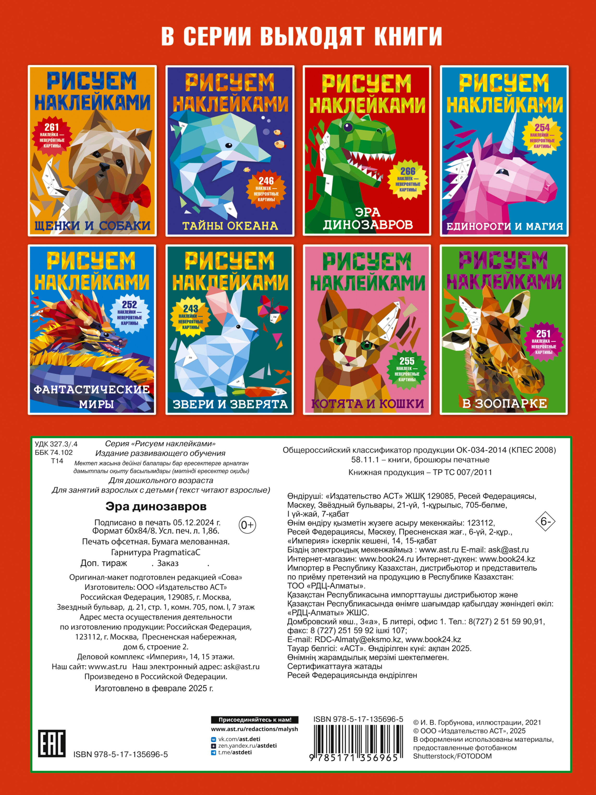 В новой серии книг «Рисуем наклейками» - игровые задания с геометрическими стикерами, необыкновенно популярные во всем мире. В уникальной книжке ребят увидят древних обитателей нашей планеты, которых можно раскрасить стикерами, подобрав наклейки по номерам. Юным художникам обязательно понравятся интересные задания на развитие логики, памяти, внимания, мелкой моторики. Книжка для всех, кто любит рисовать и своими руками создавать коллажи из наклеек. • Подбирая нужные наклейки для каждого фрагмента рисунка, ребенок откроет для себя удивительный мир динозавров. • Игра со стикерами развивает мелкую моторику, зрительное и сенсорное восприятие, внимание и усидчивость. • Приклеивая элементы, ребенок видит, как картинка становится ярче и красочнее. И это делает он сам! • Динозаврик из наклеек украсит интерьер детской комнаты, станет ярким запоминающимся подарком для друзей и близких. • Увлекательные игровые задания отлично развивают пространственное мышление и воображение, наблюдательность, логику, внимание. Рисуем наклейками, развиваем логику, внимание, запоминаем цифры!| Издательство | ИЗДАТЕЛЬСТВО "АСТ" |