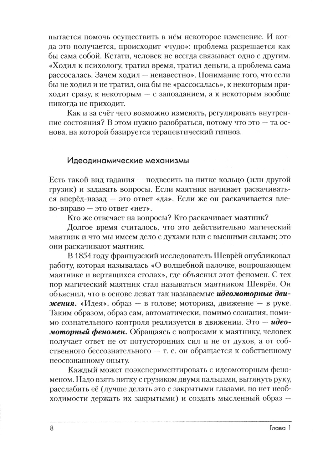 Эта книга создана на основе систематического курса эриксоновского гипноза, проводимого авторами на протяжении многих лет. Она адресована в первую очередь практикам - психологам, психотерапевтам, консультантам и всем тем, кто оказывает помощь и поддержку другим людям и хочет сделать свои техники еще более гибкими и эффективными. Эриксоновский гипноз не заставляет ни от чего отказываться; несмотря на то, что он представляет собой самостоятельное направление, он прекрасно сочетается со всеми остальными техниками, дополняя и усиливая их. Книга не предназначена для самостоятельного изучения эриксоновского гипноза и не заменяет прохождения систематического цикла под руководством опытного тренера; она позволяет лучше усвоить и закрепить его материал. Книга будет полезна всем практикующим психологам и психотерапевтам, а также всем тем, кто хотел бы составить адекватное представление об эриксоновском гипнозе.| Издательство | Класс |