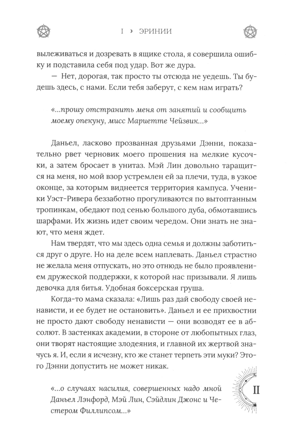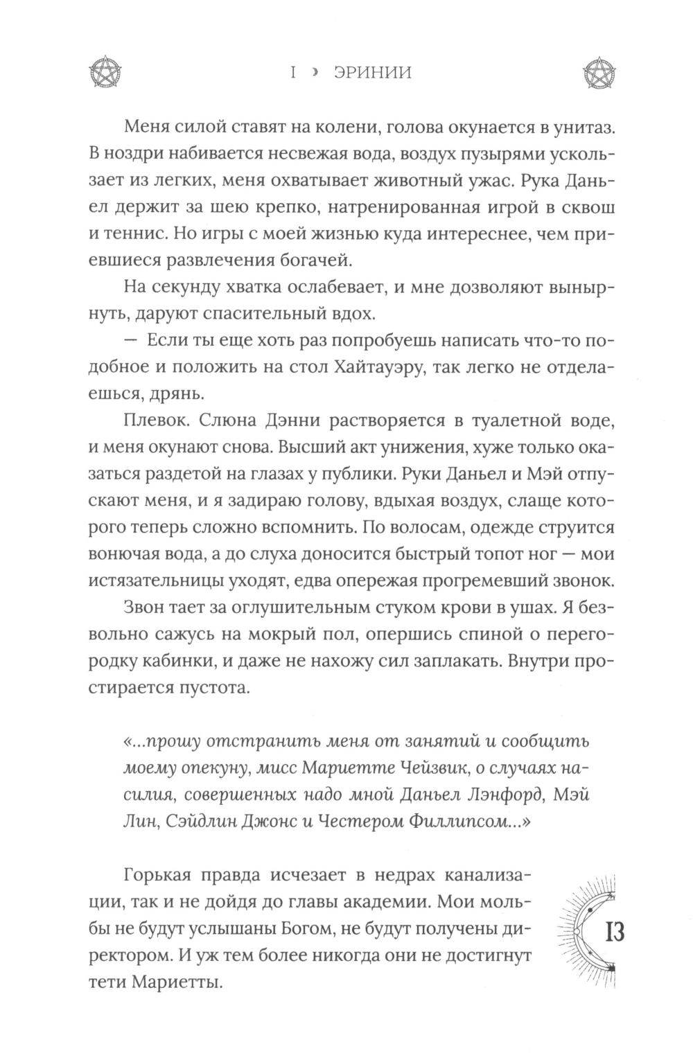 Уэст-Ривер - элитная британская академия с безупречной репутацией. Однако за красивой картинкой прячутся грязные тайны, порочность учеников и непримиримая вражда. Беатрис - сирота, но в академии она была окружена вниманием и любовью. За год до окончания учебы все меняется: лучшие подруги превращаются в беспощадных врагов. В порыве отчаяния Беатрис заключает сделку с потусторонними силами, чтобы отомстить за все издевательства. Цена - кровавые подношения, цель - смерть обидчиков. Тьма окутывает академию и запускает цепочку трагических событий. Перед Беатрис встает выбор: преодолеть собственную жестокость или отдаться ей всецело.| Издательство | Полынь |
