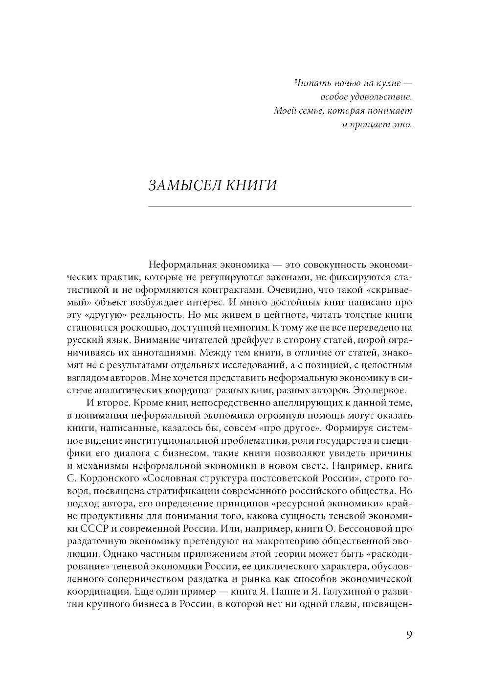 В представленных в книге 16 эссе освещаются различные аспекты неформальной экономики как деятельности в обход государственных правил. Эссе написаны в жанре рецензий на книги отечественных и зарубежных авторов, среди которых есть и сугубо академические, и публицистические. В книге обсуждаются как общемировые причины развития неформальной экономики, так и ее российская специфика, включая советский опыт, постсоветский «рэкет», современное состояние судебной системы, характер отношений бизнеса и власти, неформальный мир труда россиян. Книга предназначена для широкого круга читателей, интересующихся проблемами экономики. Полезна для студентов, аспирантов, преподавателей и исследователей в области социальных и экономических наук.| Издательство | ИД Высшей школы экономики |