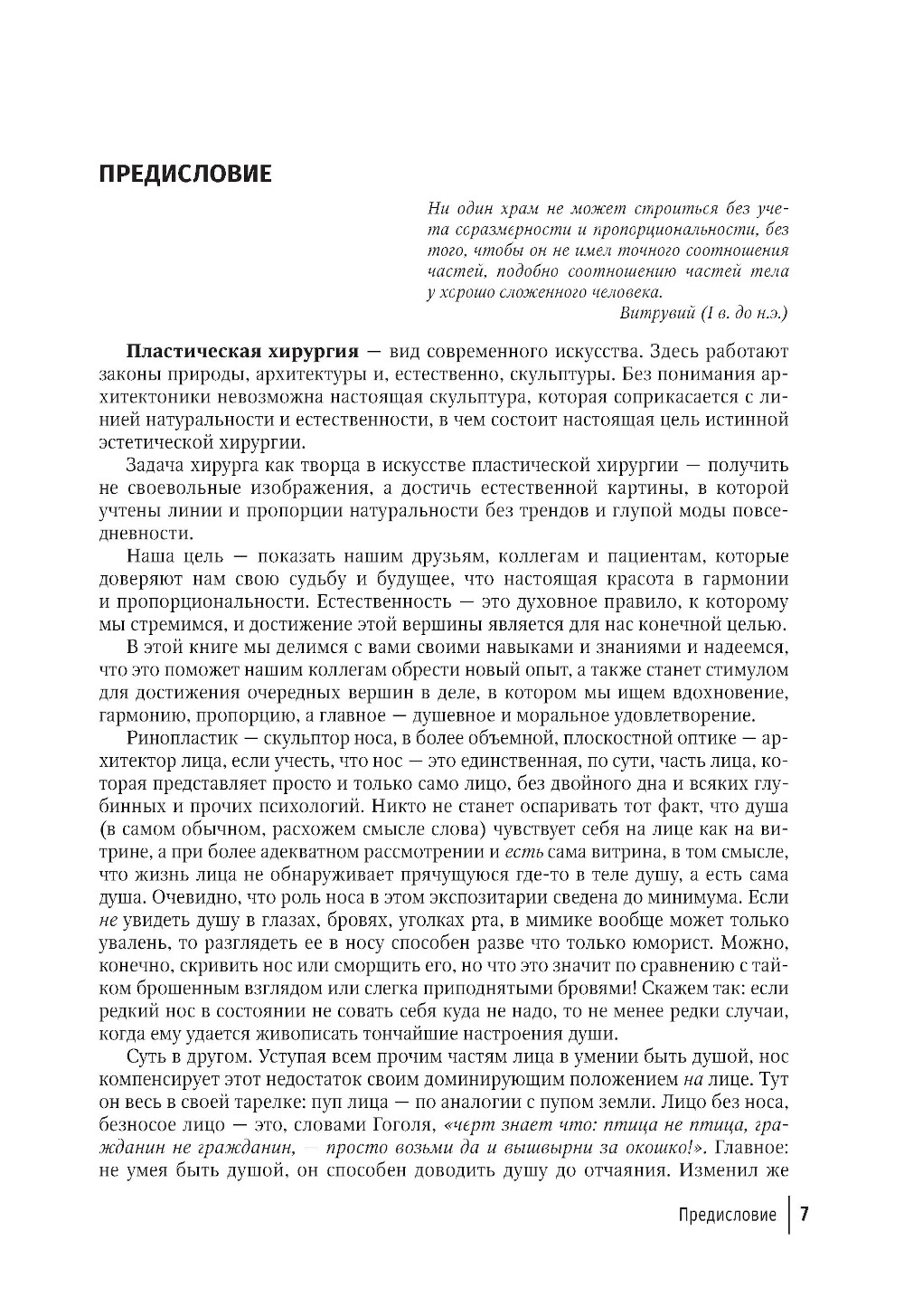 В книге представлены данные гистоморфологической оценки тканевых слоев поверхностной носовой оболочки. В частности, уточнены уровни расположения подкожно-жирового и мышечно-фасциального слоев, определены синтопические взаимоотношения между составными структурами поверхностной носовой оболочки, что имеет существенное значение для профилактики формирования неконтролируемого рубцевания данной области после проведенной эстетической хирургии носа. Описаны прогностические факторы для повторной эстетической хирургии носа и влияние девиации перегородки носа на структуры наружного носа. Предложен оригинальный алгоритм ведения пациентов, претендующих на хирургию носа по эстетическим показаниям, позволяющий определить и устранить сопутствующую функционально значимую внутриносовую патологию. Издание предназначено врачам-оториноларингологам, пластическим и челюстно-лицевым хирургам, преподавателям, аспирантам и студентам медицинских вузов.| Издательство | ГЭОТАР-Медиа |