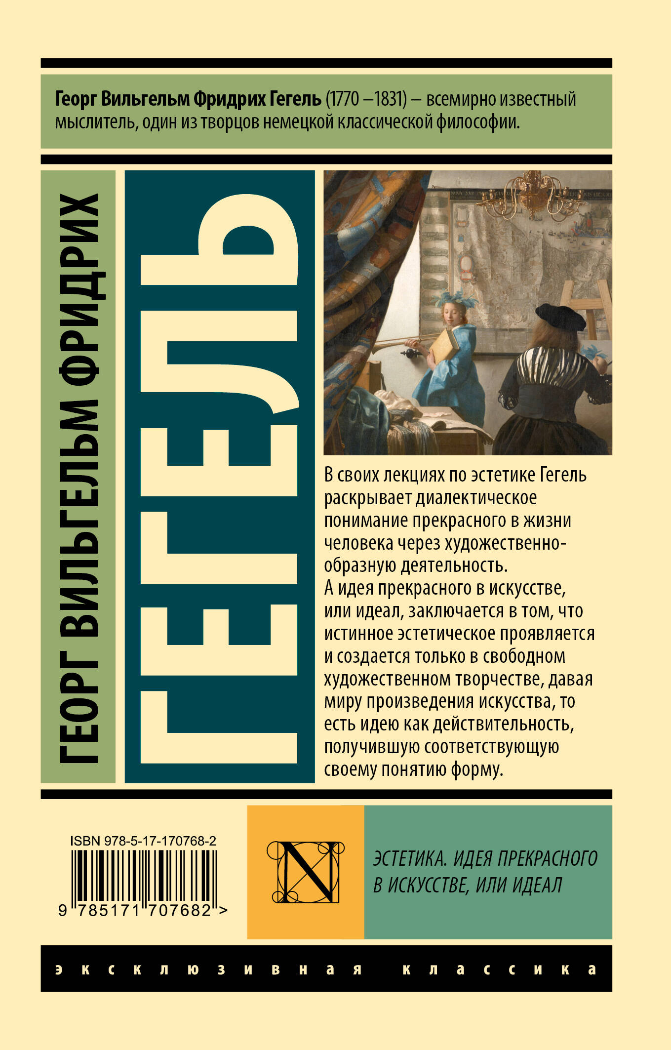 - От автора работ «Феноменология духа», «Наука логики» и «Энциклопедия философских наук». - Георг Вильгельм Фридрих Гегель - всемирно известный мыслитель и один из творцов немецкой классической философии. - В своих лекциях по эстетике Гегель раскрывает диалектическое понимание прекрасного в жизни человека через художественно-образную деятельность. - Издание в серии «Эксклюзивная классика» - в удобном карманном формате и узнаваемом оформлении.| Издательство | Издательство "АСТ" |