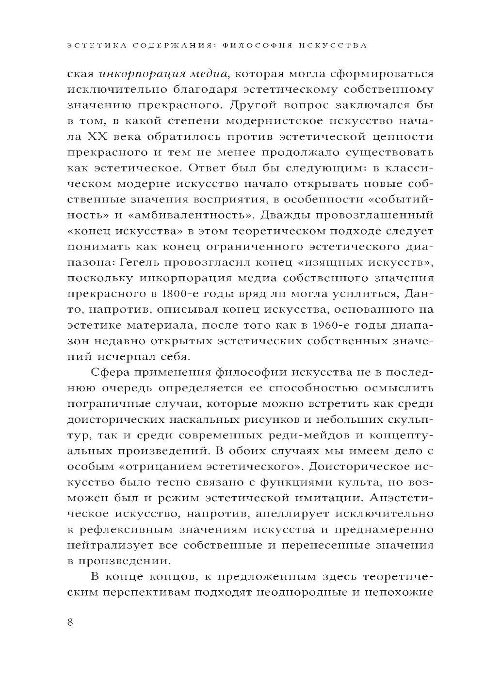 Передовое искусство XX века следовало принципам эстетики материала (кубизм, сериализм в музыке и т. д.), сегодня же мы наблюдаем поворот к эстетике содержания. Современные художники ищут новизну не в эстетическом материале, но в новом эстетическом содержании, артикулированном самим произведением. Этот содержательно-эстетический поворот составляет квинтэссенцию философии искусства Гарри Лемана. Основываясь на теории ключевых категорий, к которым относятся красота, возвышенное, событийность и амбивалентность, он предлагает новый взгляд на историю европейского искусства - как на историю эстетического опыта. Такой слом художественной парадигмы проиллюстрирован примерами из изобразительного искусства, поэзии, музыки, сфер рекламы, моды и дизайна. Книга адресована философам, культурологам, искусствоведам, историкам искусства.| Издательство | ИД Высшей школы экономики |