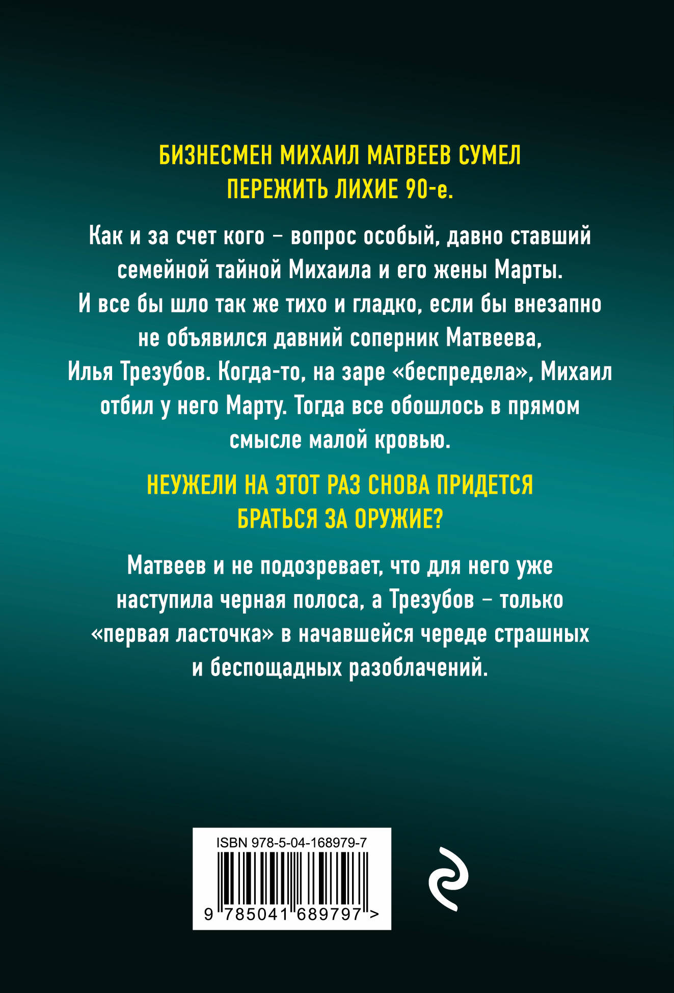 Бизнесмен Михаил Матвеев сумел пережить лихие 90-е. Как и за счет кого - вопрос особый, давно ставший семейной тайной Михаила и его жены Марты. И все бы шло так же тихо и гладко, если бы внезапно не объявился давний соперник Матвеева, Илья Трезубов. Когда-то, на заре «беспредела», Михаил отбил у него Марту. Тогда все обошлось в прямом смысле малой кровью. Неужели на этот раз снова придется браться за оружие? Матвеев и не подозревает, что для него уже наступила черная полоса, а Трезубов - только «первая ласточка» в начавшейся череде страшных и беспощадных разоблачений.| Издательство | Эксмо |