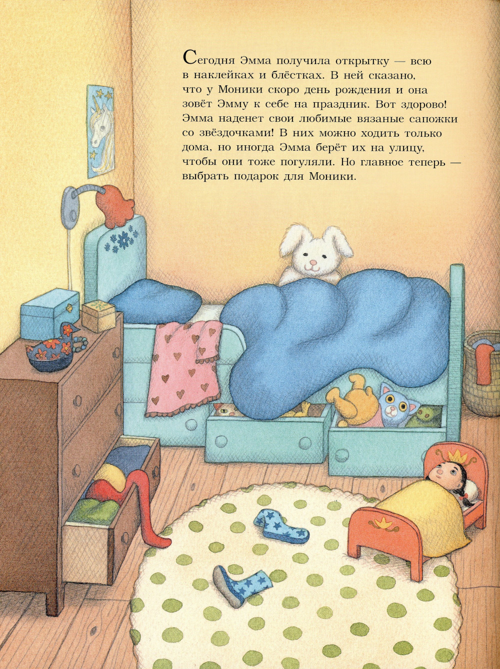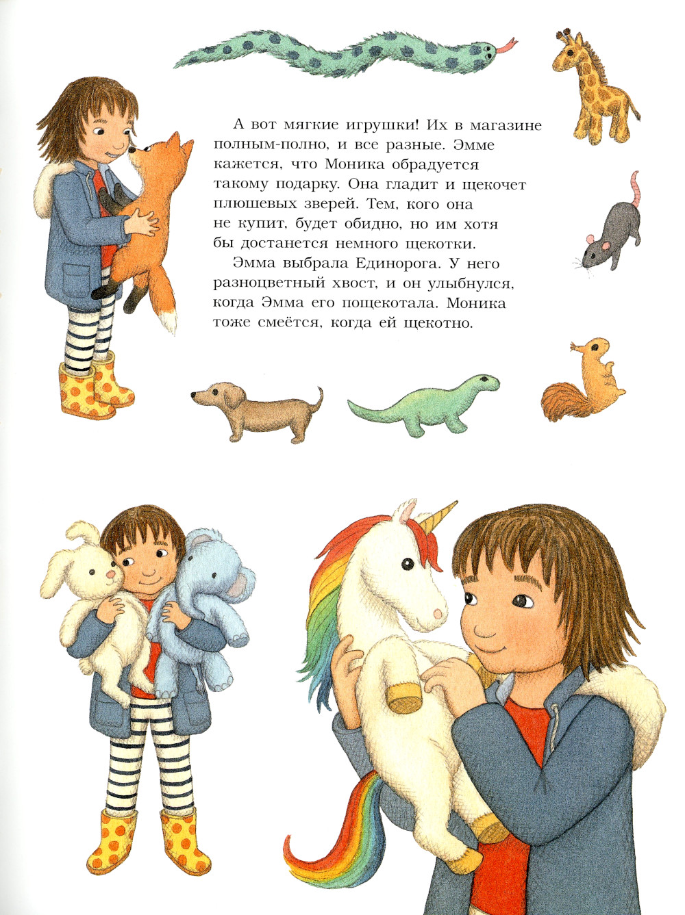Эмма идёт на день рождения к Монике, своей лучшей подруге. И несёт ей в подарок Единорога - самую лучшую игрушку, какая только была в магазине. Но в гостях Эмма понимает, что не в силах расстаться с Единорогом, ведь он такой необыкновенный и уже успел подружиться со всеми плюшевыми зверями Эммы. А у Моники и без него много подарков.