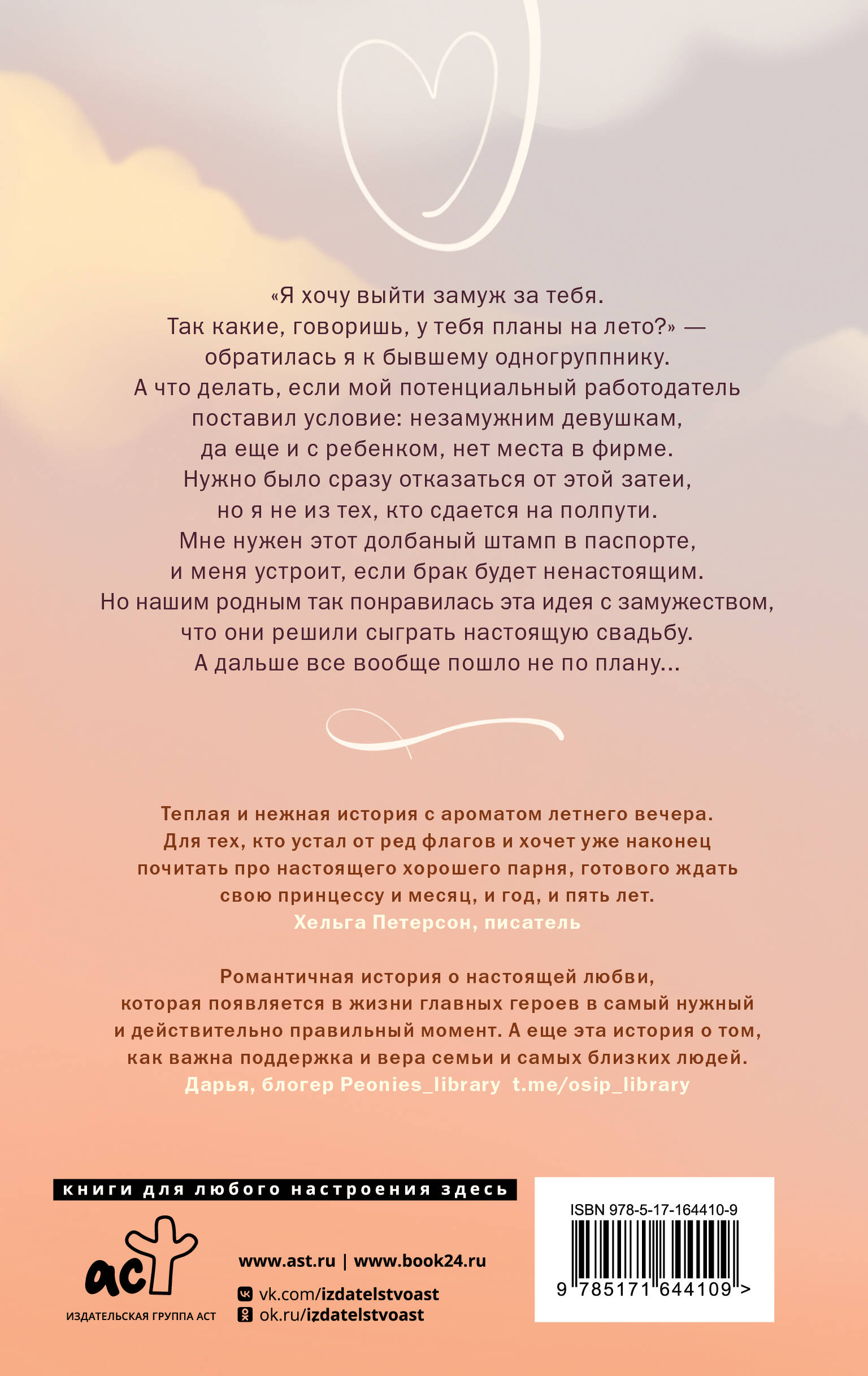 - Книга, которая подарит веру в любовь. Для тех, кто устал читать романтику с ред флагами и «плохими парнями». - Трогательная и нежная история. Девушка была уверена, что вступила в фиктивный брак, в то время, как парень давно любил ее - просто ловко это скрывал. - Для фанатов теплой прозы о любви: книг Аси Лавринович и Анны Джейн. - Серия «Статус: в отношениях» - о том, какими неожиданными тропками мы приходим друг к другу.| Издательство | Издательство "АСТ" |