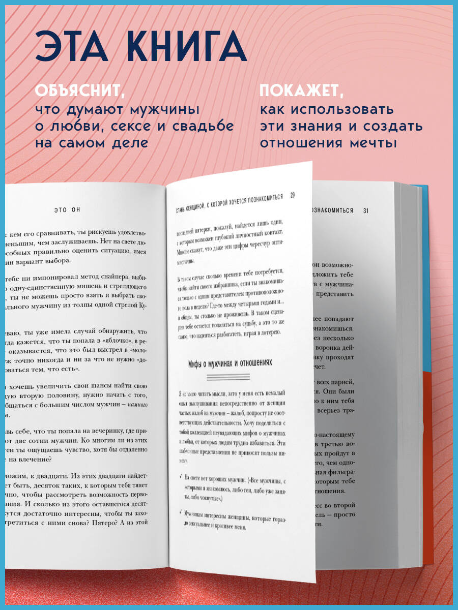 ВЫ ИЩЕТЕ: умного, сильного, воспитанного, свободного. НО ВАС ОКРУЖАЮТ: инфантильные, нытики, нахалы, женатые. «На свете не осталось свободных адекватных мужчин». Если это ваше убеждение только крепнет после каждого свидания, то у коуча по отношениям Мэтью Хасси есть для вас хорошие новости. Славные парни буквально повсюду, но вы не умеете с ними разговаривать. Для женщин, которые могут блестяще провести деловые переговоры любого уровня сложности, но проваливают обычную беседу за чашкой кофе с милым парнем, Мэтью Хасси разработал простую трехступенчатую систему наведения порядка в личной жизни. Эта книга объясняет, что думают мужчины о любви, сексе и свадьбе на самом деле. А главное - показывает, как с минимальными усилиями использовать эти знания и получить те отношения, о которых вы мечтали. Читая «Это он», вы обнаружите себя в трех состояниях: 1. Женщина, с которой хочется познакомиться. 2. Женщина, в которую хочется влюбиться. 3. Женщина, с которой хочется прожить жизнь. ОТЗЫВ: «Мэтью Хасси - гений, чье тонкое понимание взаимоотношений мужчины и женщины делает его абсолютным гуру любви! Его книга - необходимый инструмент для всех, кто ищет любовь». - Ева Лонгория, актриса В России эта книга выходила под оригинальным названием: «Get the guy. Как найти и влюбить в себя мужчину твоей мечты».| Издательство | ООО "Издательство "Эксмо" |