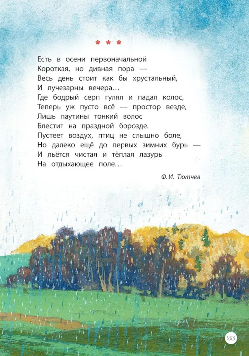 Стихи, включённые в эту книгу, написаны замечательными поэтами, классиками отечественной литературы, - Ф. Савиновым, С. Дрожжиным, И. Никитиным, Ф. Тютчевым, А. Фетом, А. Майковым, С. Есениным и другими. Они воспевают родную землю, чудесный мир русской природы, неповторимой и прекрасной во все времена года. Из этих строк складывается образ Родины. Книга станет прекрасным помощником в воспитании любви к Родине, развитии художественного вкуса и образного мышления у детей. Прочитав эти стихи, юные читатели научатся замечать прекрасное в окружающем мире и ценить то, что дарит им родная земля. Сборник рекомендован для семейного чтения и будет интересен как младшим школьникам, так и ребятам постарше.| Издательство | Детская литература |
