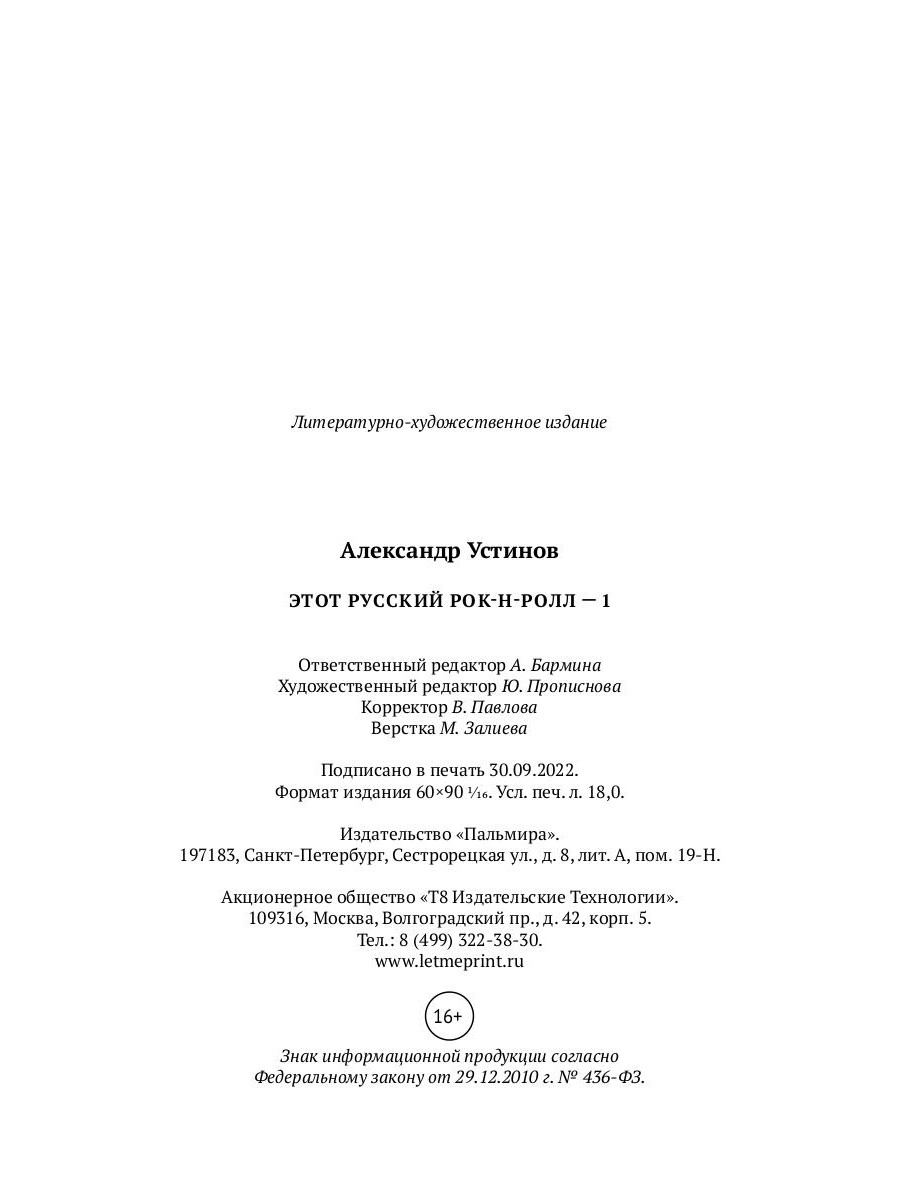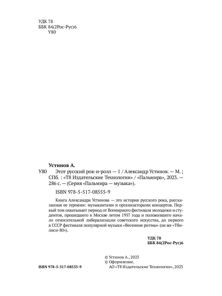 Александр Устинов - петербургский журналист, радио- и телеведущий. Эта книга - история русского рока, рассказанная ее героями: музыкантами и организаторами концертов. Первый том охватывает период от Всемирного фестиваля молодежи и студентов, прошедшего в Москве летом 1957 года и положившего начало относительной либерализации советского искусства, до первого в СССР фестиваля популярной музыки "Весенние ритмы" (он же "Тбилиси-80").