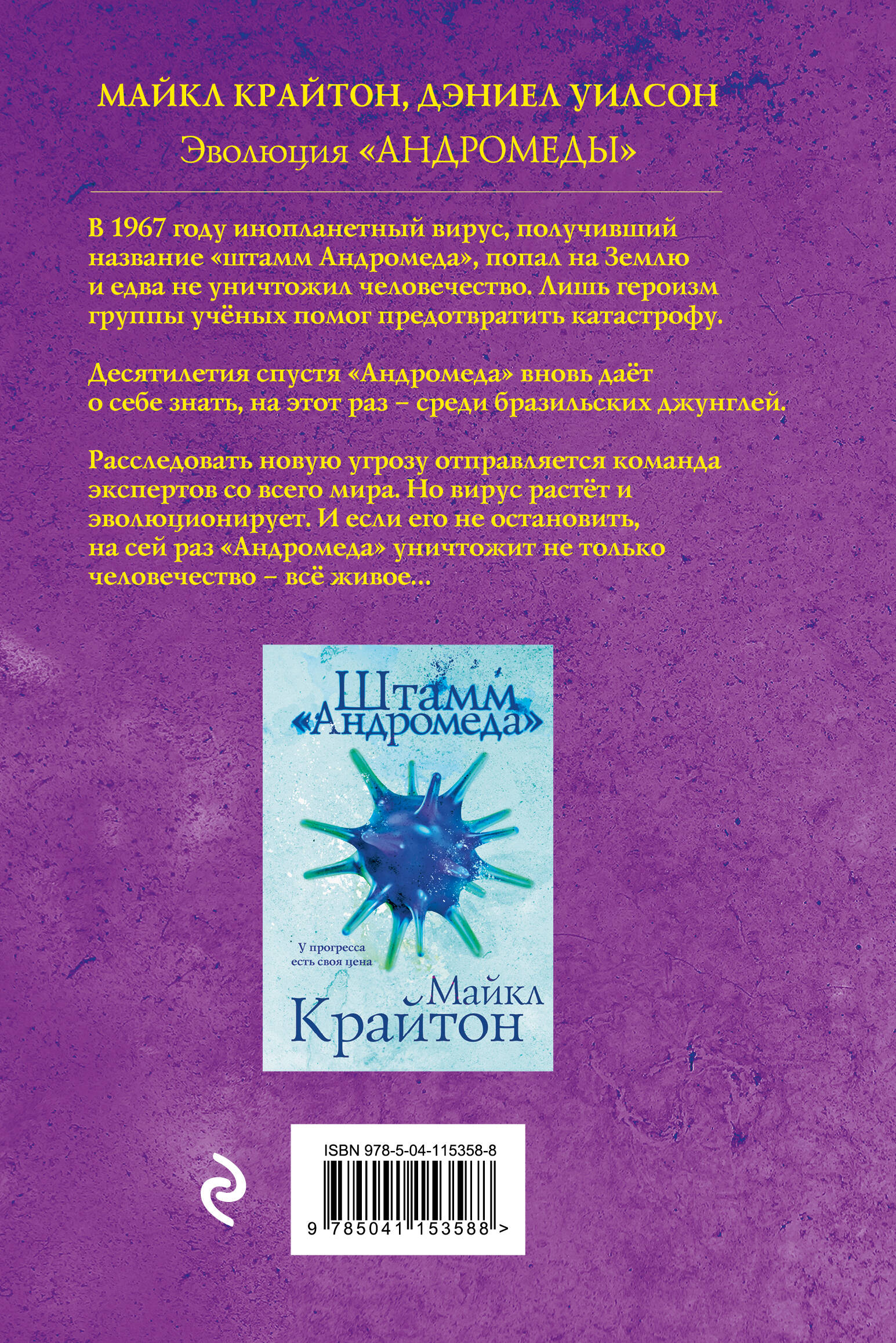 В 1967 году инопланетный вирус, получивший название «штамм Андромеда», попал на Землю и едва не уничтожил человечество. Лишь героизм группы ученых помог предотвратить катастрофу. Десятилетия спустя «Андромеда» вновь дает о себе знать, на этот раз - среди бразильских джунглей. Расследовать новую угрозу отправляется команда экспертов со всего мира. Но вирус растет и эволюционирует. И если его не остановить, на сей раз «Андромеда» уничтожит не только человечество - всё живое… Продолжение культового романа «Штамм "Андромеда"» Майкла Крайтона, чьи книги легли в основу легендарного «Парка Юрского периода».