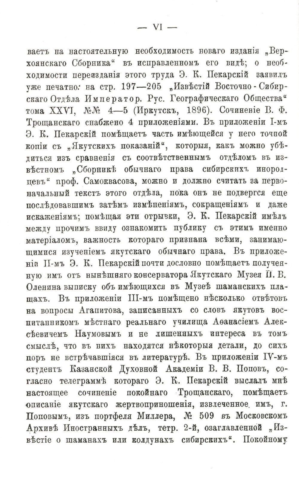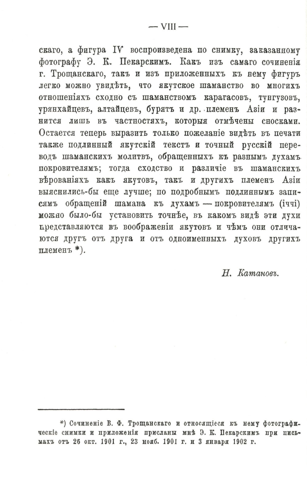 Вниманию читателей предлагается книга известного отечественного этнографа В.Ф.Трощанского (1843-1898), в которой подробно рассматривается развитие шаманства, или "черной веры", у якутского народа. В работе описываются особенности первобытной религии и древних верований якутов, освещается эволюция религиозных представлений якутского народа. Рассматриваются понятия якутов о жизни и душе, о смерти, представления о загробной жизни, их основные обряды, культ предков и жертвоприношения. Описывается процесс обучения и посвящения шамана, виды шаманов (черные и белые), а также инструменты, употребляемые шаманами. Развитие религиозных представлений у якутов сопоставляется с особенностями шаманских верований других народов. Книга, написанная более ста лет назад (первое издание вышло в 1902 г.), будет интересна этнологам, историкам, религиоведам, культурологам, а также самому широкому кругу читателей.