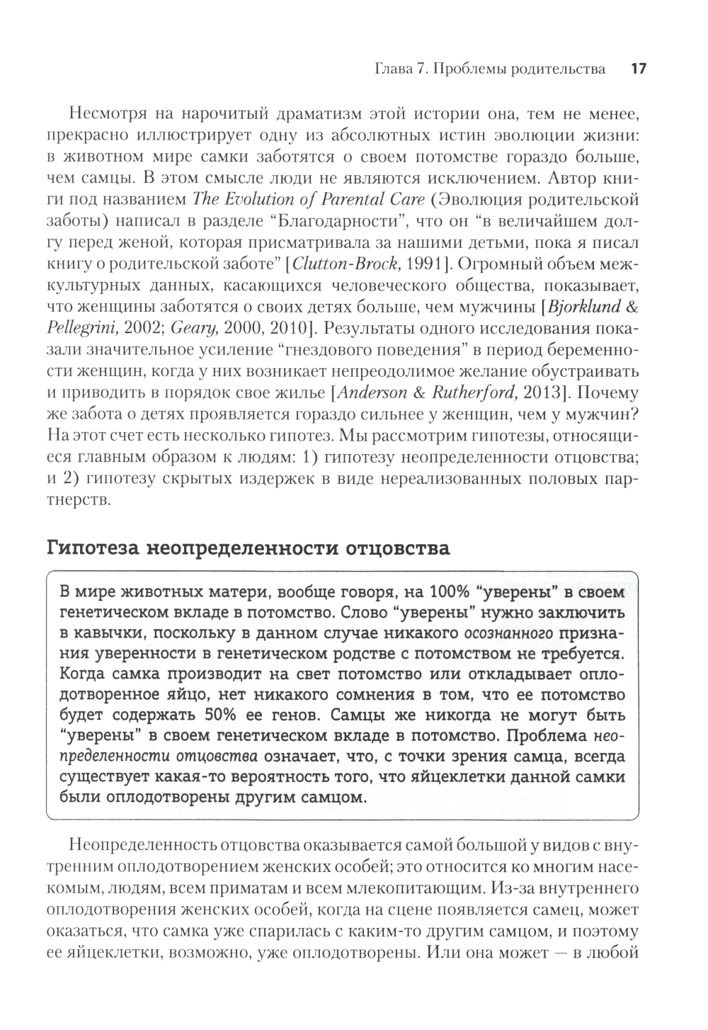 Эволюционная психология представляет собой принципиально новую науку, подлинный синтез современных принципов психологии и эволюционной биологии. С момента публикации первого издания этой книги, завоевавшего ряд наград, в области эволюционной психологии было проведено множество новых исследований. В данной книге Дэвид М. Басс рассматривает поведение человека с эволюционной точки зрения. Автор предоставляет в распоряжение учащихся концептуальные инструменты, необходимые для изучения эволюционной психологии. Он дает знания, позволяющие применять эти инструменты в эмпирических исследованиях, связанных с психической деятельностью человека. Настоящее, уже шестое издание содержит расширенное изложение культурной эволюции и включает новый раздел, посвященный совместной эволюции культуры и генов; дополнительные материалы, в которых обсуждается интербридинг между современными людьми и неандертальцами; расширенные обсуждения эволюционных гипотез, которые не нашли эмпирического подтверждения, и многое другое! В книгах представлены богатый педагогический материал, в том числе приведены вопросы, развивающие критическое мышление, а также врезки, содержащие примеры из практики и призванные показать возможности применения эволюционной психологии к реальным жизненным ситуациям. Эти книги представляют собой бесценный ресурс для студентов-старшекурсников, изучающих психологию, биологию и антропологию.| Издательство | Диалектика |