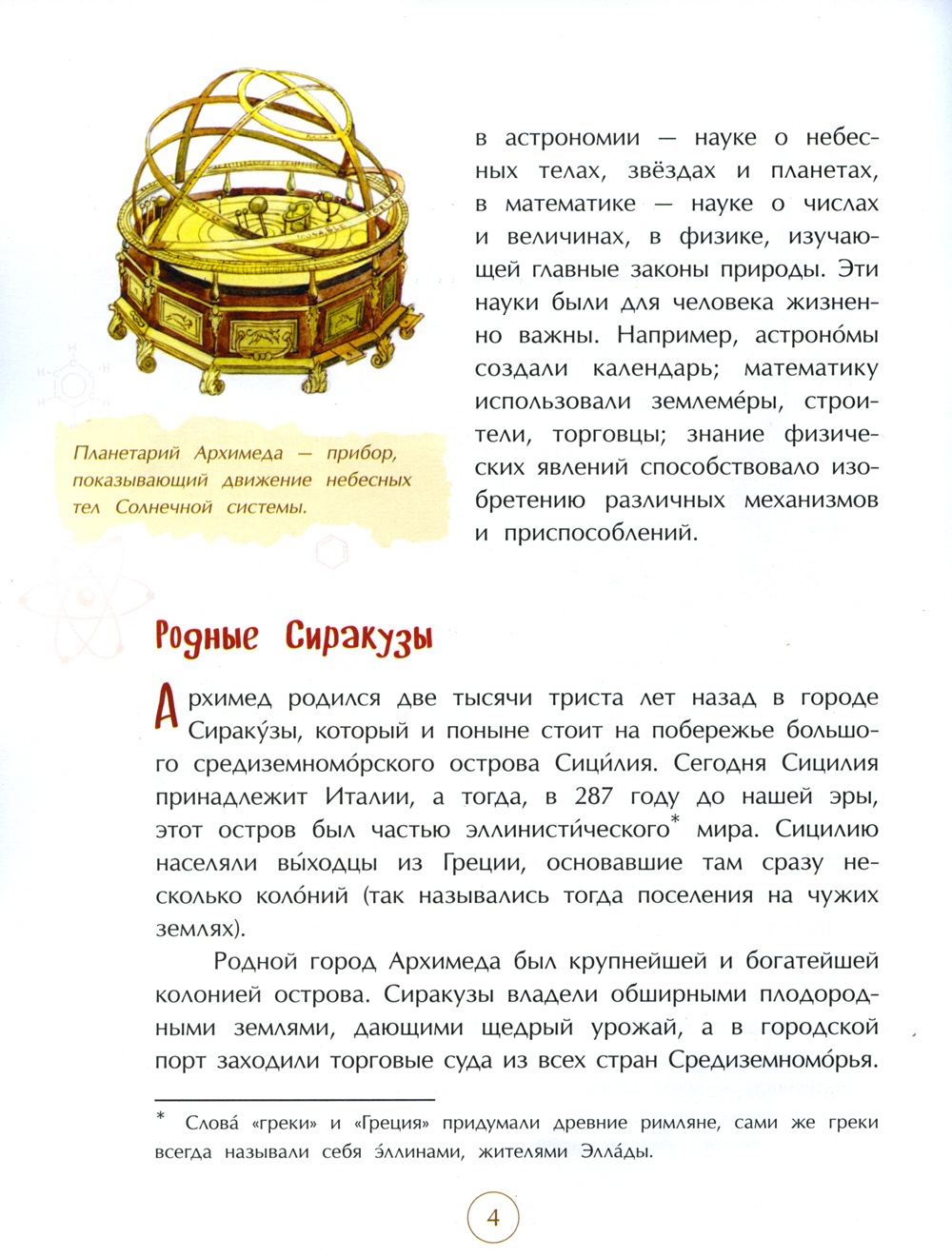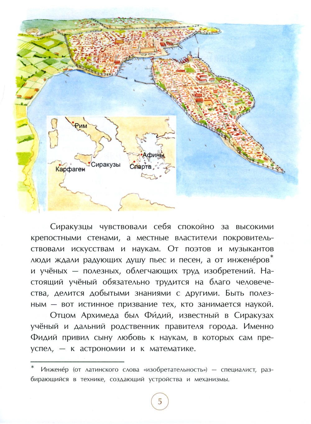 Узнать объём любого предмета, даже самой замысловатой формы, с помощью погружения его в жидкость. Пересчитать все песчинки во Вселенной. И даже перевернуть Землю - была бы только «точка опоры». Великий древнегреческий механик, математик и физик Архимед знал, как всё это сделать. Эта история о нём, о времени, в котором он жил, и об изобретённых им удивительных механизмах, которыми мы и сейчас пользуемся каждый день.| Издательство | Настя и Никита |