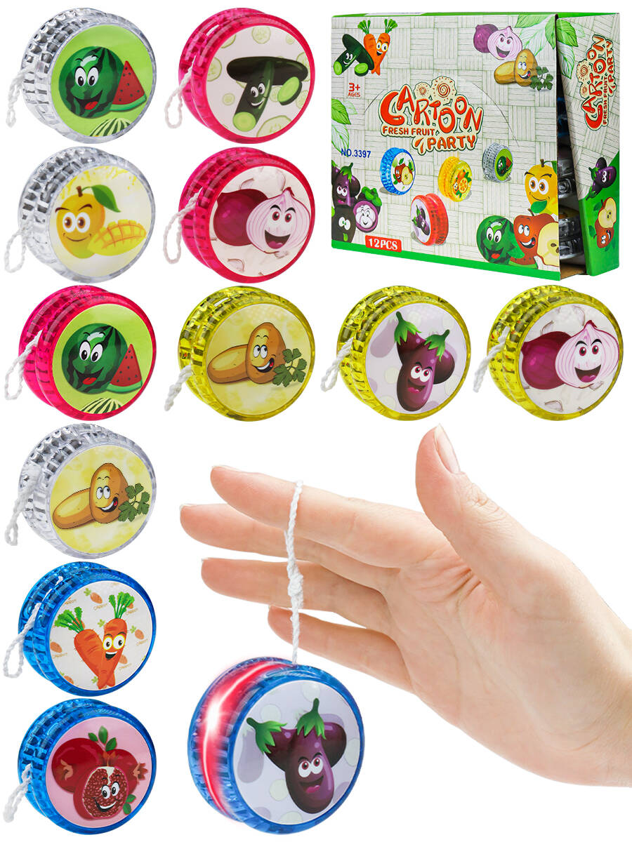Аннотация: Йо-йо(5.5см)"Весёлые фрукты-овощи"(свет,бат.2шт.AG3в компл.,12шт.в ш/у,цв-микс)(Арт.И-2143)кратно 12