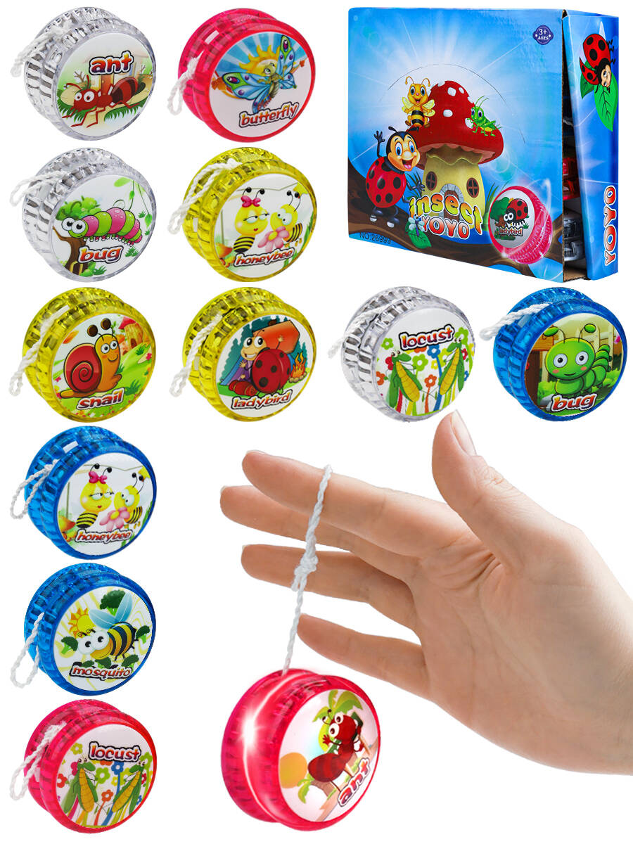 Йо-йо(5.5см)"Весёлые насекомые"(свет,бат.2 шт.AG3 в комп.,12шт.в ш/у,цвет-микс)(Арт.И-2141)кратно 12