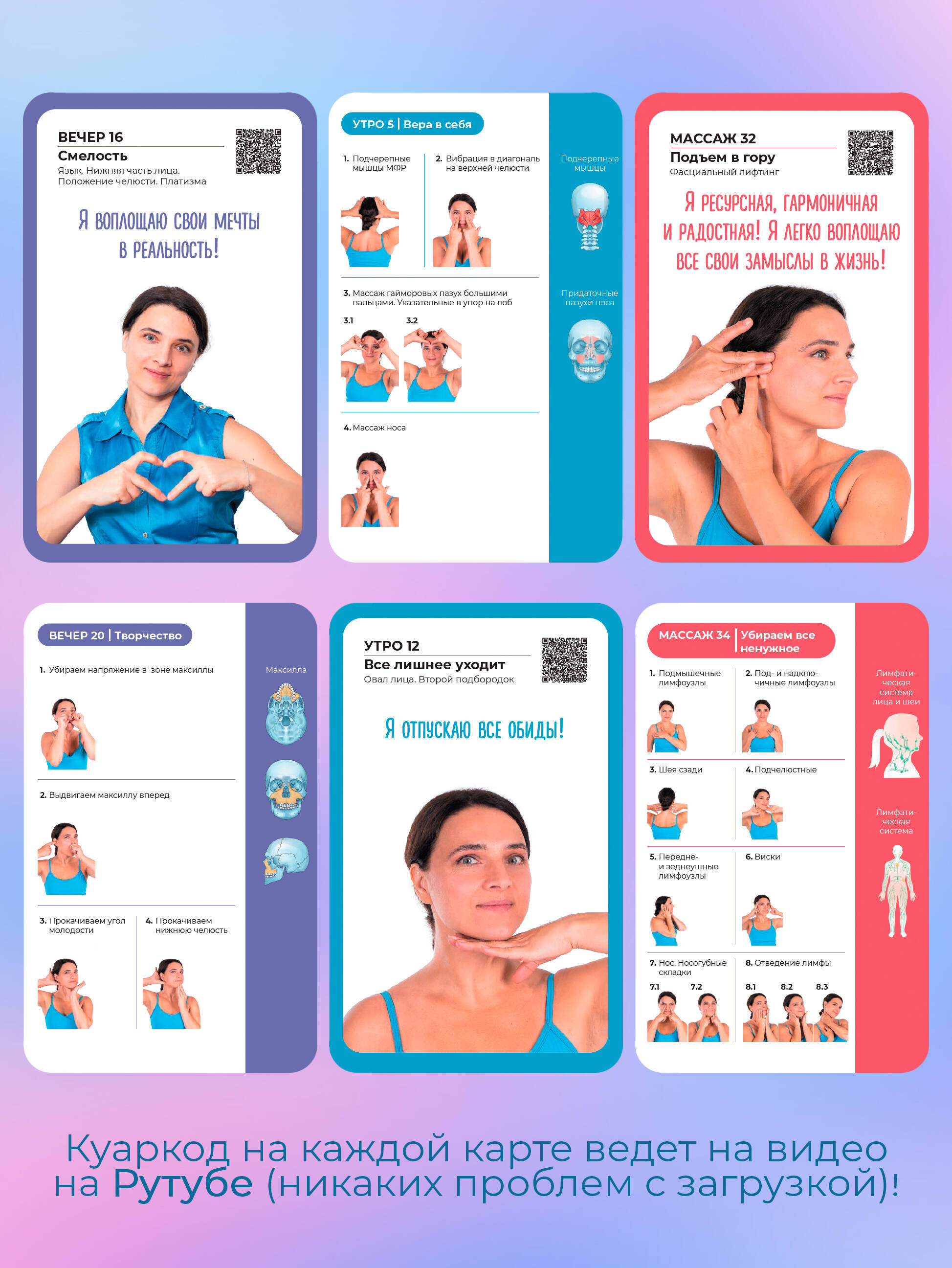 Получить результат, как от салонных процедур, но не выходя из дома и без каких-либо рисков и баснословных затрат? Автор книги "Вторая молодость кожи", фейс-тренер и массажист Татьяна Курчина сделала это возможным! Перед вами - универсальный инструмент для сохранения молодости и красоты. В этой коробке - набор из 60 цветных карт с иллюстрированной системой упражнений и куар-кодами, ведущими на видеоуроки, которые помогут вам всегда оставаться молодой, здоровой и привлекательной. Вы сможете составить собственный комплекс упражнений на каждый день, а карточки с фотоподсказками дадут возможность заниматься в любое время и в любом месте. А мотивирующие настрои от автора зарядят позитивной энергией и помогут научиться принимать и любить себя настоящую. С помощью этого набора вы сможете: · составить качественную программу по уходу за собой; · запустить процесс естественного омоложения и оздоровления организма; · сохранить вашу природную красоту; · обрести уверенность в себе. В наборе: 60 цветных карточек с упражнениями, видеоуроками, фотоподсказками и настроями для молодости лица и тела. На каждой карточке 3-5 упражнений и приемов и куар-коды, открывающие видеоуроки. Четыре блока: "Утро", "Вечер", "Массаж", "Упражнения для тела". Комбинируйте, как вам нравится! Размер карточек 10х15 см. Материал - плотный картон.| Издательство | Издательство "АСТ" |