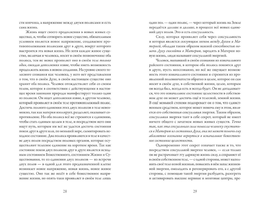 Свет и тьма, дух и материя, суть и форма, день и ночь... Мужское и женское, одно из проявлений высших сил, опыт и понимание которых в наше время практически утеряно. Представления и восприятие современного человека искажены настолько, что в нашей жизни два этих начала перевёрнуты и проявляют свойства, противоположные должному. Вслед за ними переворачиваются и все остальные аспекты существования. Книга, которую вы держите в руках, передаёт опыт мужского и женского начал в их естественном проявлении двух высших законов, трансформируя миропонимание, проясняя разум и очищая чувства. Ранее тайные знания Посвящённых становятся доступными нам и каждому пробуждённому человеку, благодаря чему мы обнаруживаем чистый источник божественной творящей силы в нас самих - в нашей сексуальной энергии. В этом источнике есть все возможности - от падения в бездну до вознесения. Обретя его, человек волен сделать свой выбор сам.| Издательство | Издательский бутик "Книжные сети" |