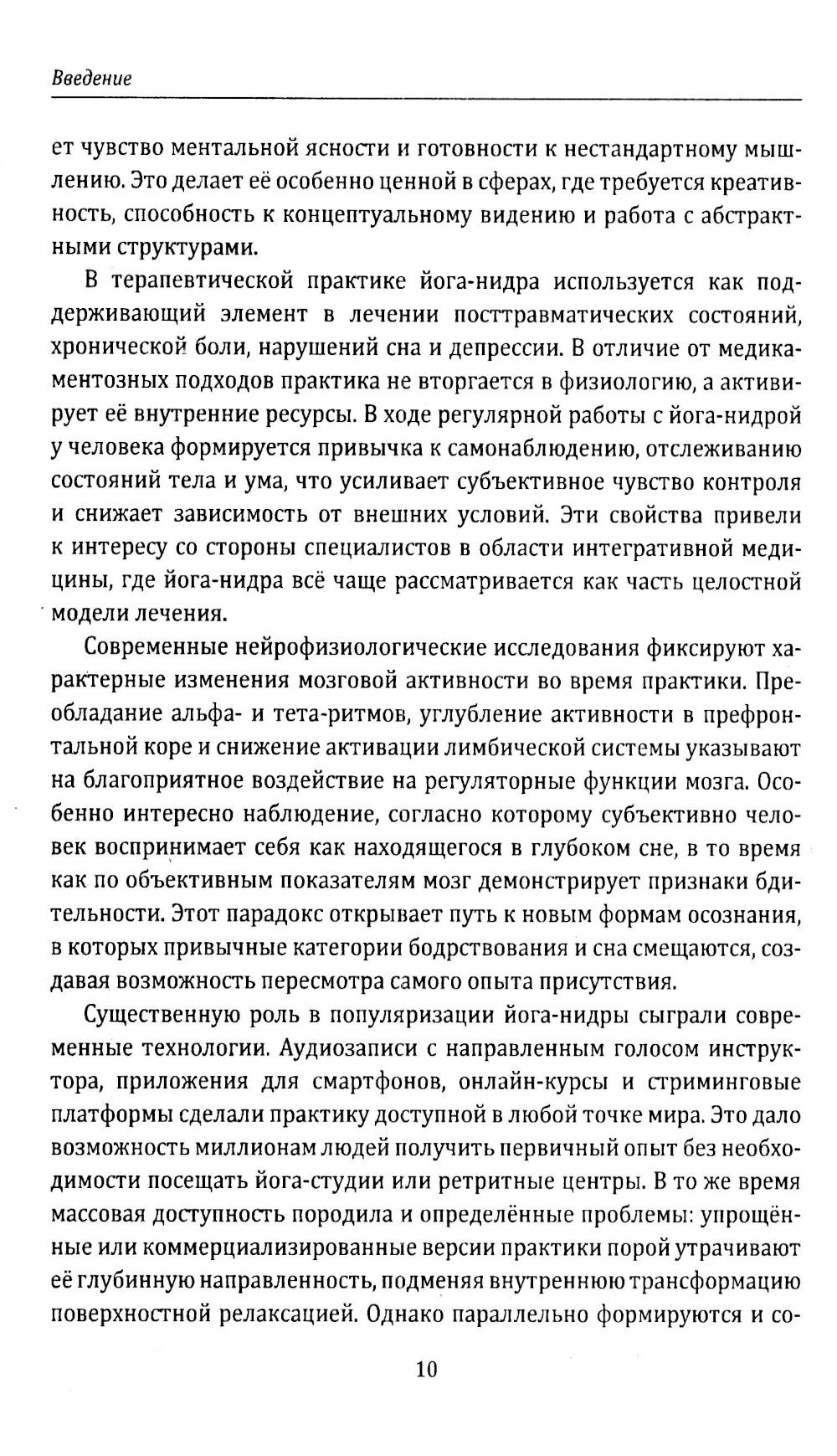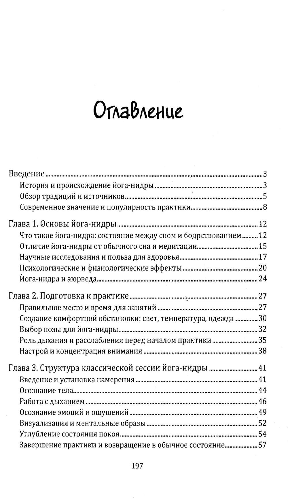 В книге «Йога-нидра» раскрывается древняя практика глубокого расслабления и внутреннего осознания, известная как йога сна. Подробно объясняются теоретические основы и этапы техники йога-нидры, которая помогает достичь состояния полного покоя и гармонии тела и ума без необходимости засыпать. Читатель познакомится с эффективными методами снятия стресса, улучшения качества сна, повышения концентрации и раскрытия творческого потенциала. Книга подходит как для новичков, желающих освоить практику работы со сном, так и для опытных йогинов, стремящихся углубить понимание внутренней медитации и самоисследования. Практические советы и пошаговые инструкции помогут каждому открыть в себе источник внут ренней силы и покоя.| Издательство | Изд. Книга |