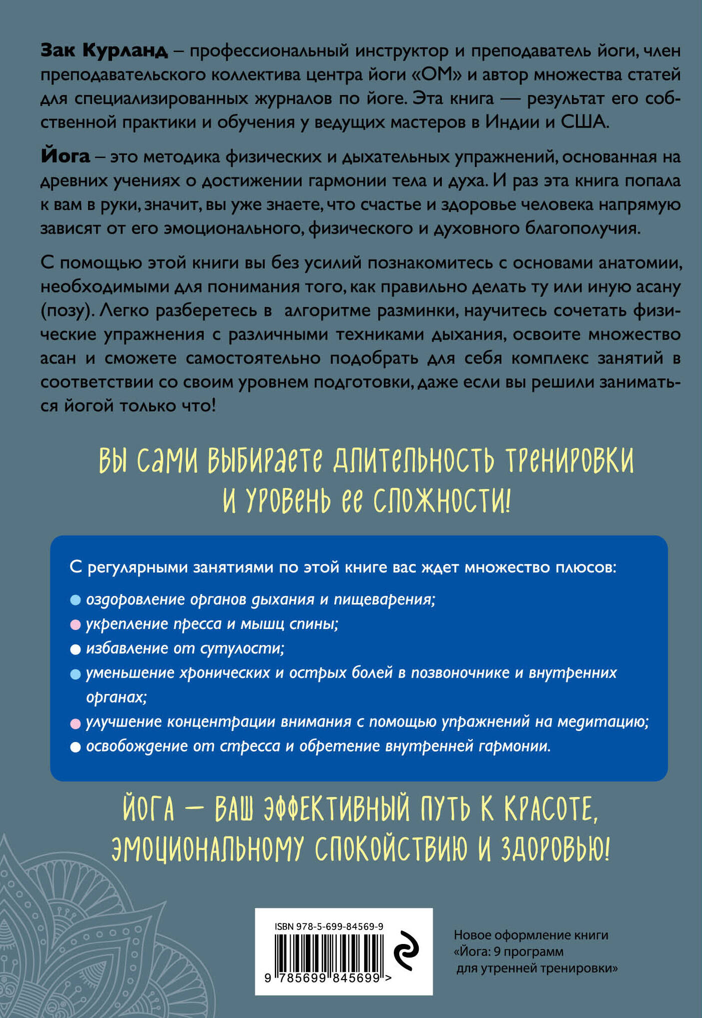 Об авторе. Зак Курланд - профессиональный инструктор и преподаватель йоги, член преподавательского коллектива центра йоги «ОМ» и автор множества статей для специализированных журналов по йоге. Для кого эта книга. Эта книга для тех, кто интересуется йогой и хочет заниматься ею самостоятельно вне зависимости от уровня подготовки. Фишки книги. В книге приведено 9 различных тренировок на 20,40 или 60 минут для разных уровней подготовки. Таким образом, можно самостоятельно выбрать сложность и длительность своего занятия.| Издательство | ООО "Издательство "Эксмо" |