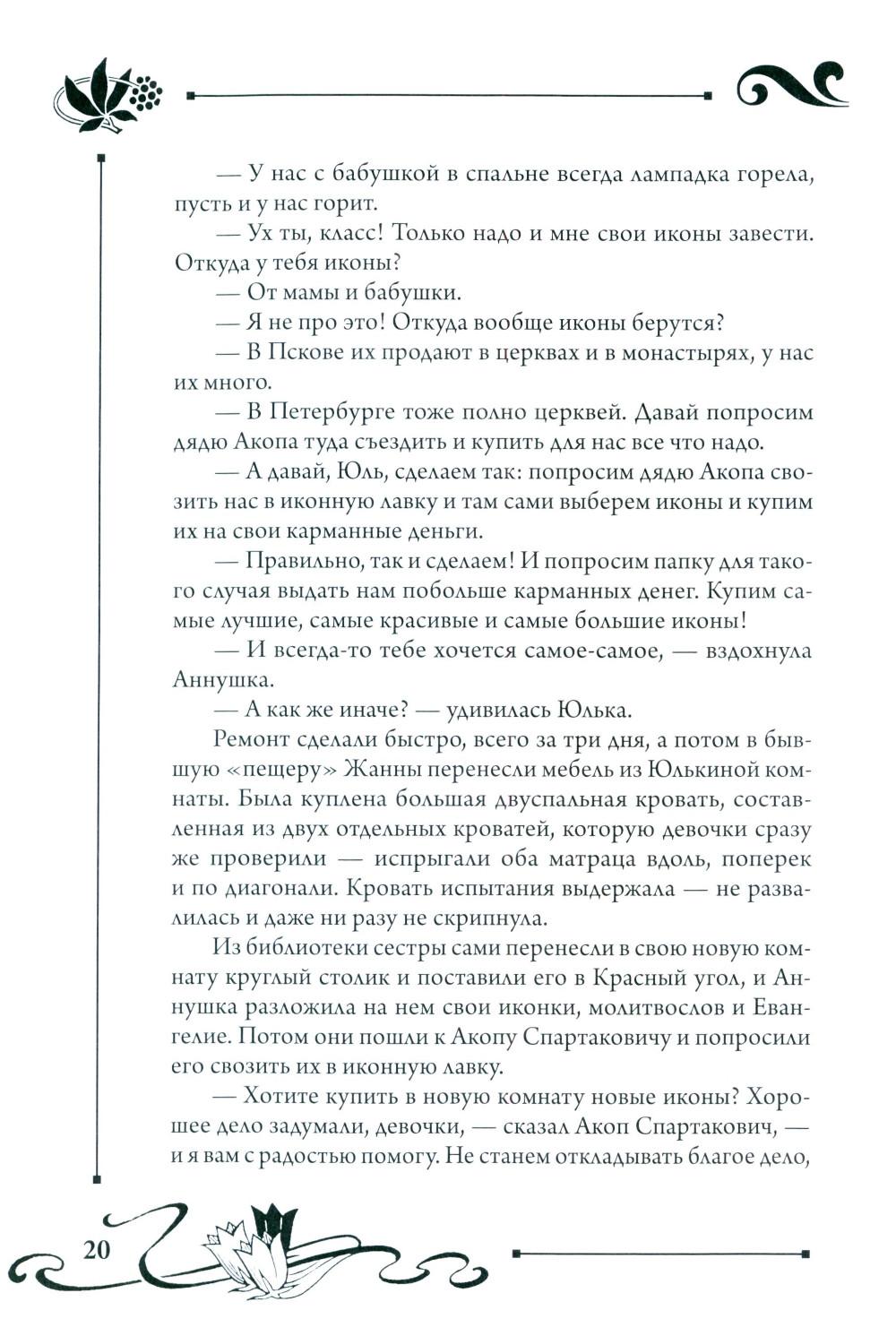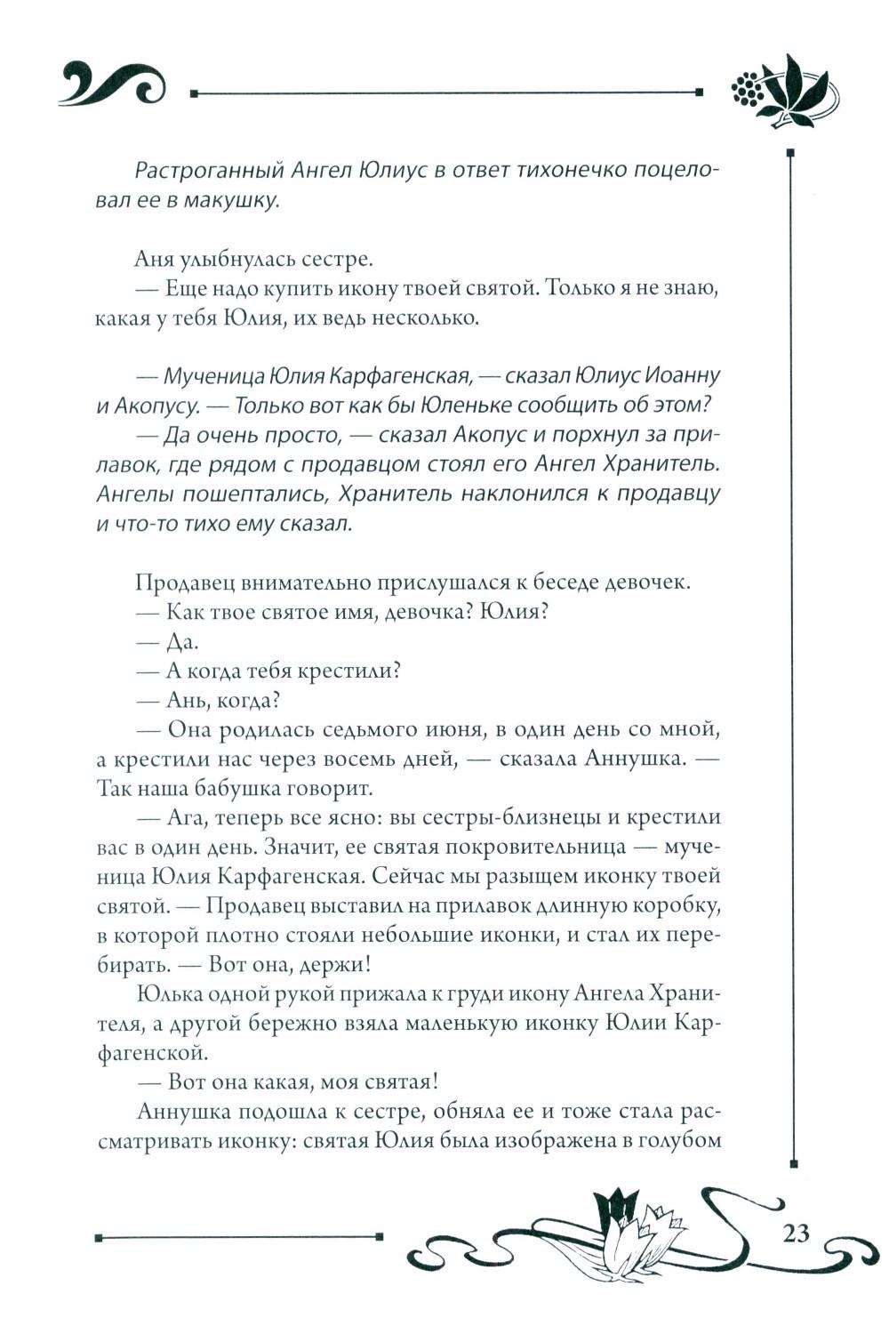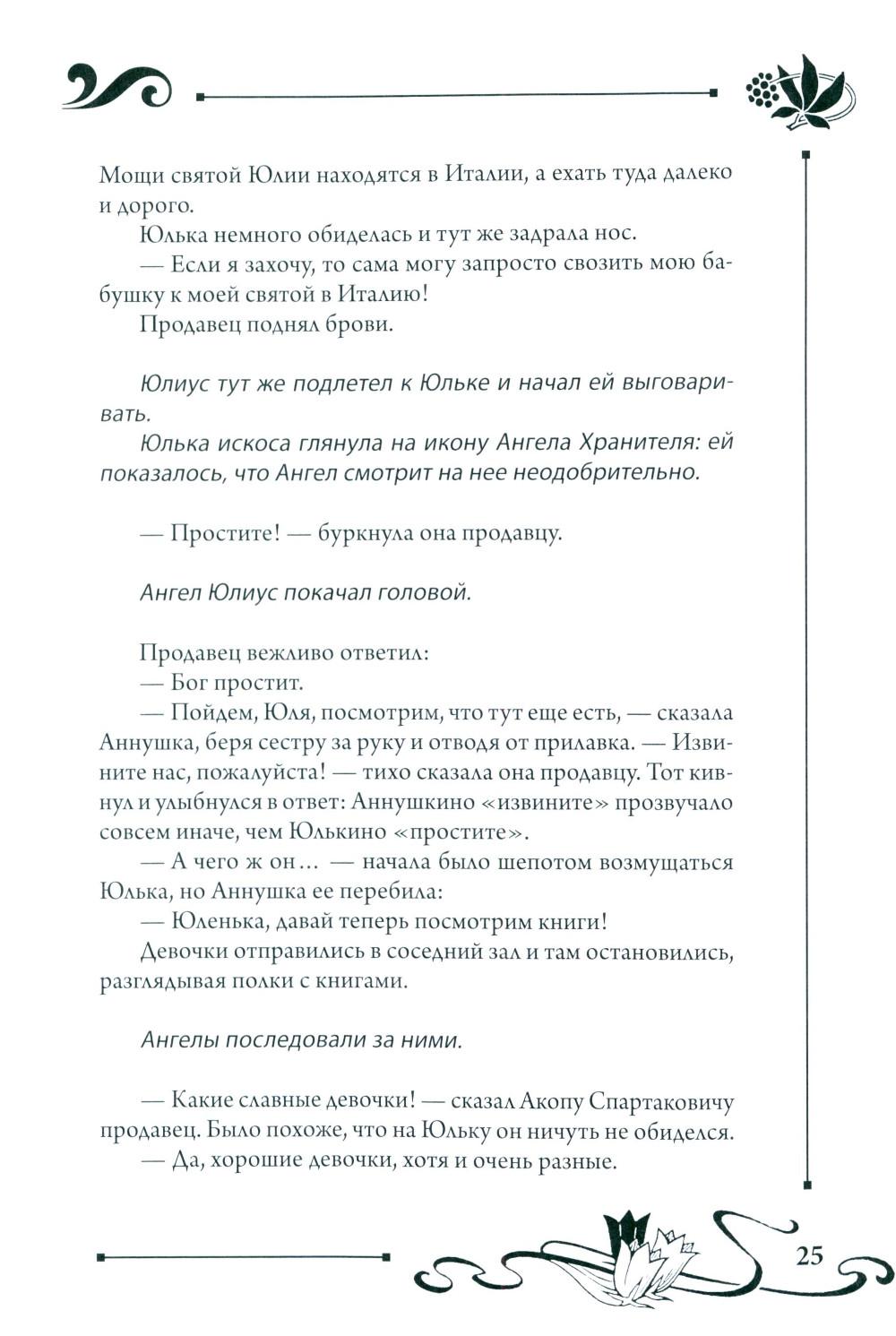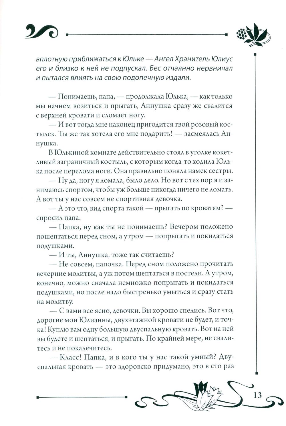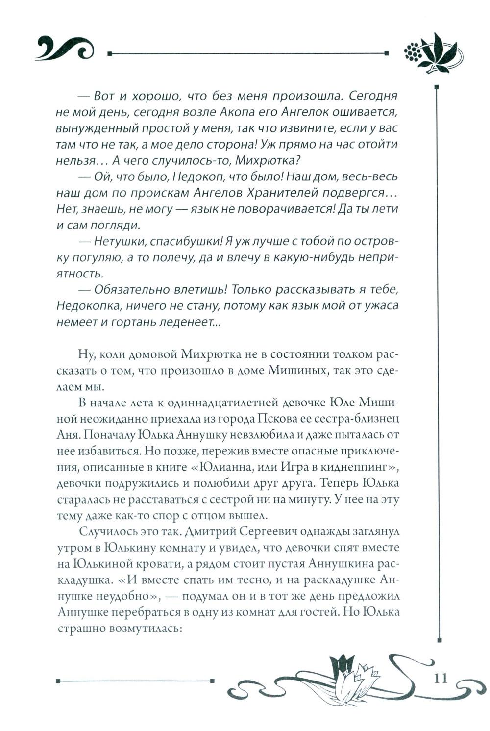 «Юлианна, или Опасные игры» Юлии Вознесенской - продолжение сказочной трилогии о сёстрах-близнецах. По сюжету Юля и Аня попадают в расположенную в далёкой Ирландии школу колдовства. Но вера в Бога и заступничество Ангелов-Хранителей помогают девочкам преодолеть опасности и козни злых волшебников и победить зло. Кроме захватывающих приключений двух сестёр Юлии и Анны, в книге даются моральные и нравственные ориентиры человека, показано восприятие одних и тех же событий как со стороны добра, так и зла, последствия и ответственность за все поступки. Книга будет интересна не только детям среднего школьного возраста, но и их родителям.