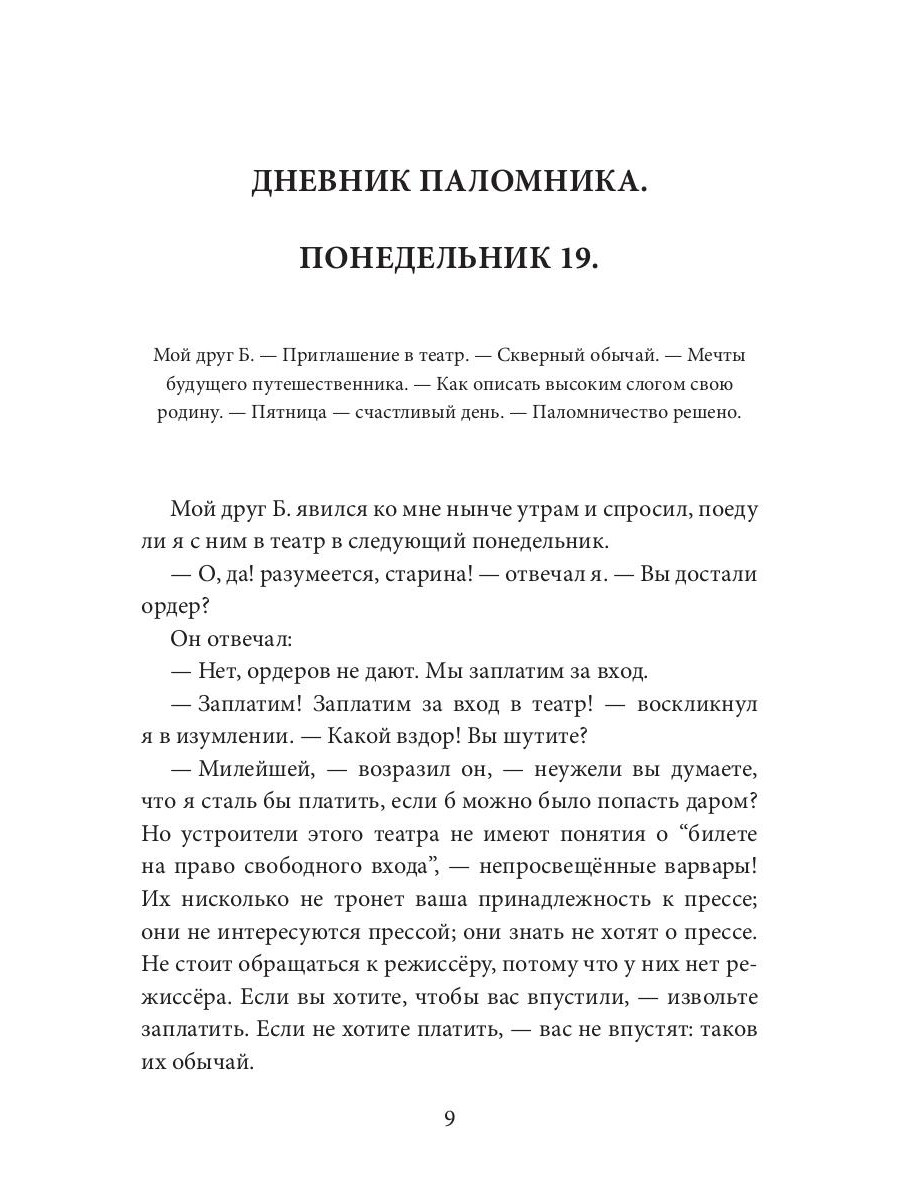 "Дневник паломника" - повесть, остроумно высмеивающая особенности немецкого быта и мировосприятия. Джером во всём умел видеть смешное, комическое, но при этом никогда не скатывался в злобную пародию, не оскорбляя - всегда искренне любя тех, над кем смеялся.