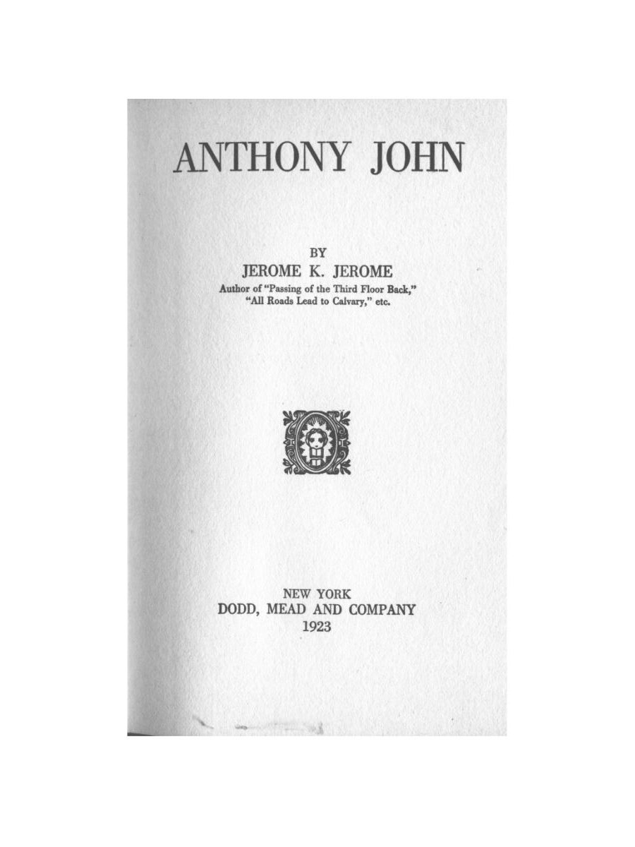 "Энтони Джон" - последний роман Джерома К. Джерома. Энтони Джон, выбившись с самых низов в элиту общества, сделал умопомрачительную карьеру благодаря своим достоинствам. Роман особенно примечателен тем, что это, наверное, единственное не юмористическое произведение английского сатирика и наряду со своей художественной ценностью он весьма точно передает атмосферу и нравы современной автору Великобритании.