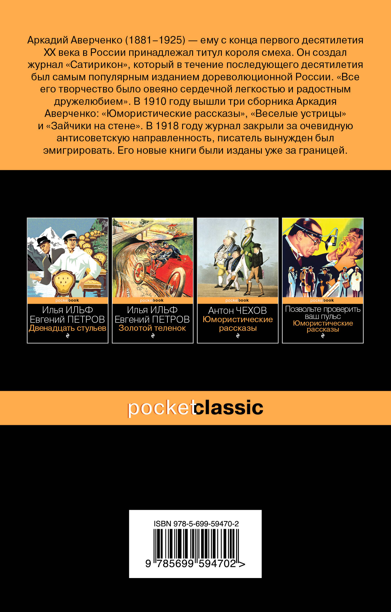 Смех - дело серьезное. Это значит, писатель, берущийся за смешную тему, обязан подойти к своей работе серьезно. Иначе получится не смешно. Среди отечественных мастеров смеха, а их на самом деле немного (Чехов, Зощенко, Ильф и Петров плюс еще с десяток имен), имя Аркадия Аверченко занимает одно из почетных мест. Современники вспоминали: «Где Аверченко - там хохот, грохот, веселье...» То же самое можно сказать и о читателях книг, вышедших из-под пера писателя: где читают Аверченко - там... И далее, как в цитате. Потому что действительно невозможно представить себе человека, читающего Аверченко с унылым, неулыбающимся лицом.| Издательство | Эксмо |