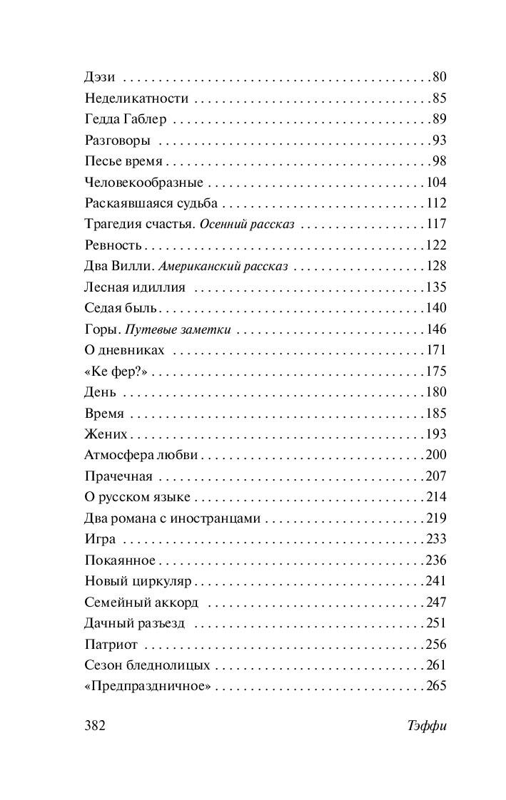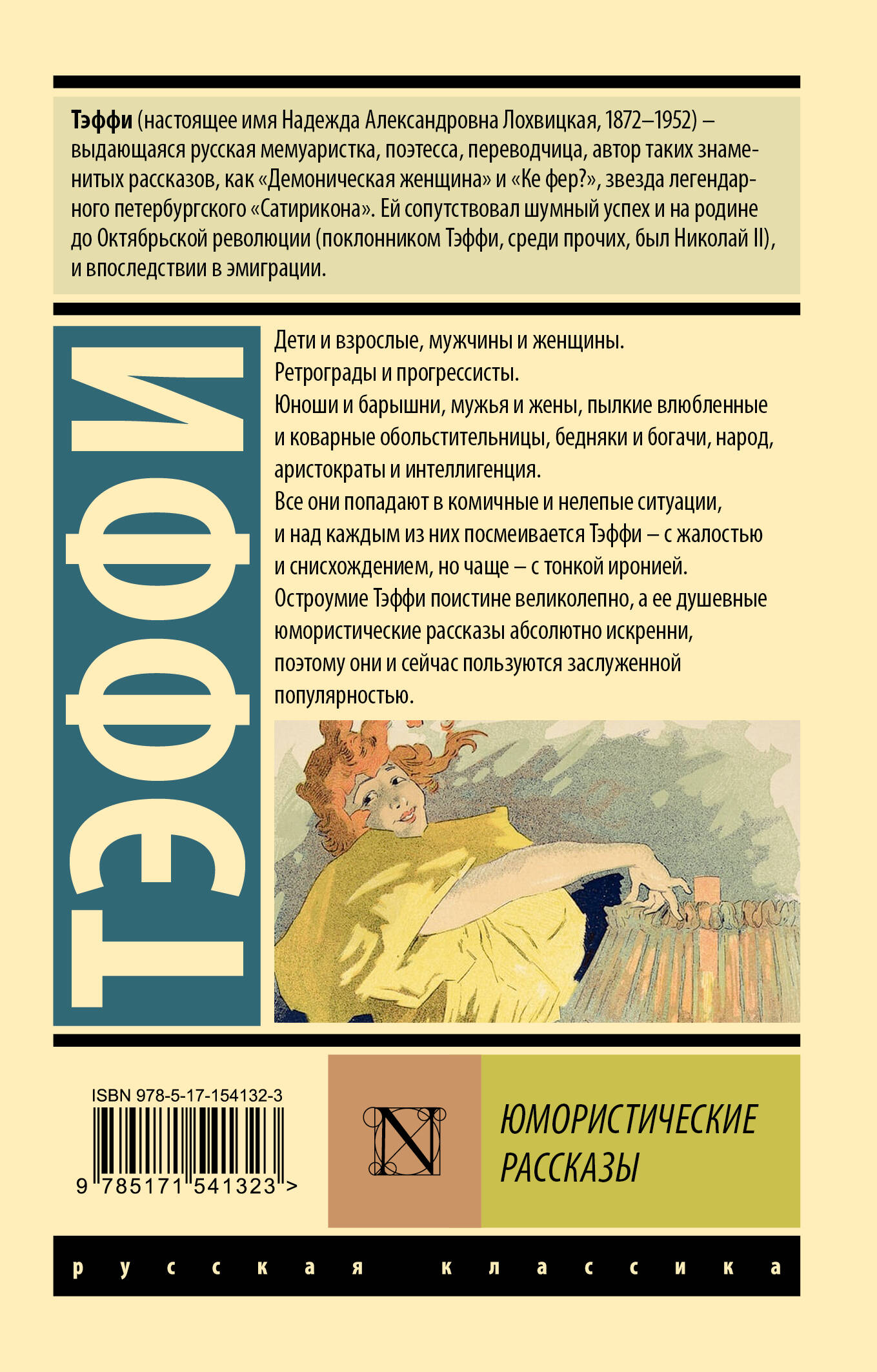 Дети и взрослые, мужчины и женщины. Ретрограды и прогрессисты. Юноши и барышни, мужья и жены, пылкие влюбленные и коварные обольстительницы, бедняки и богачи, народ, аристократы и интеллигенция. Все они попадают в комичные и нелепые ситуации, и над каждым из них посмеивается Тэффи - с жалостью и снисхождением, но чаще - с тонкой иронией. Остроумие Тэффи поистине великолепно, а ее душевные юмористические рассказы абсолютно искренни, поэтому они и сейчас пользуются заслуженной популярностью.| Издательство | ИЗДАТЕЛЬСТВО "АСТ" |