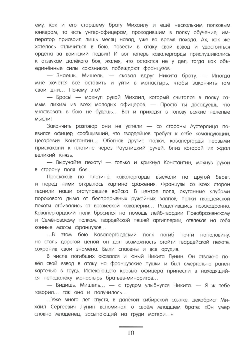 В этой книге собраны рассказы о событиях разных столетий: от XVIII века до XXI. Она рассказывает о мальчиках и девочках, совершавших подвиги: и в военное время, и в мирное, и когда взрослых не было поблизости, и когда никто из взрослых не решался действовать. Кто-то из этих детей пожертвовал жизнью. Кто-то уцелел и позже прославился другими делами, и достиг немалых высот. Отвага и бесстрашие одних стали живой легендой, имена других не оставили глубокого следа в нашей памяти. Для автора этой книги, военного историка Александра Бондаренко, подвиг каждого из них - от юного князя Долгорукова до пятилетнего Данилки Зайцева, маленького героя наших дней - важен и достоин быть вписанным в историю. Книга дополнена краткой библиографией для тех, кто хотел бы узнать ещё больше о детских подвигах разных времён. Для детей 8-14 лет.| Издательство | Изд. Лабиринт Пресс |