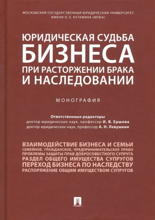 Коллективная монография посвящена актуальным проблемам определения юридической судьбы бизнеса при расторжении брака и наследовании. Материал изложен с учетом последних изменений гражданского, предпринимательского,