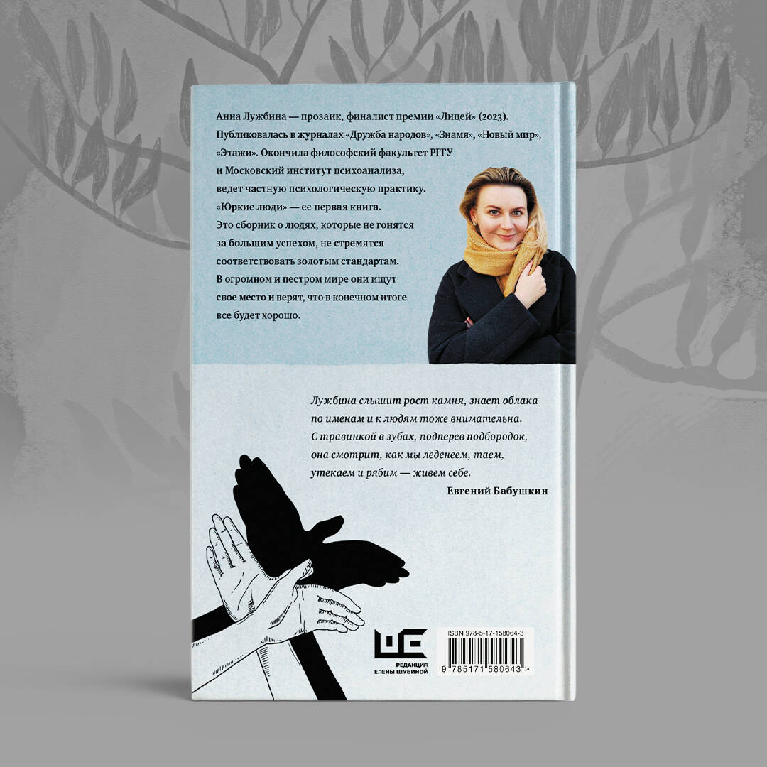 Яркий дебют. В 2023 году сборник «Юркие люди» вошел в финал премии для молодых писателей «Лицей». Эти рассказы - сказки без волшебства. Их персонажи живут в своих маленьких придуманных мирах внутри большого реального мира. И однажды они обязательно найдут свою тихую радость. Книга с картинками: каждый текст иллюстрирован рисунками Марины Козинаки.| Издательство | Издательство "АСТ" |