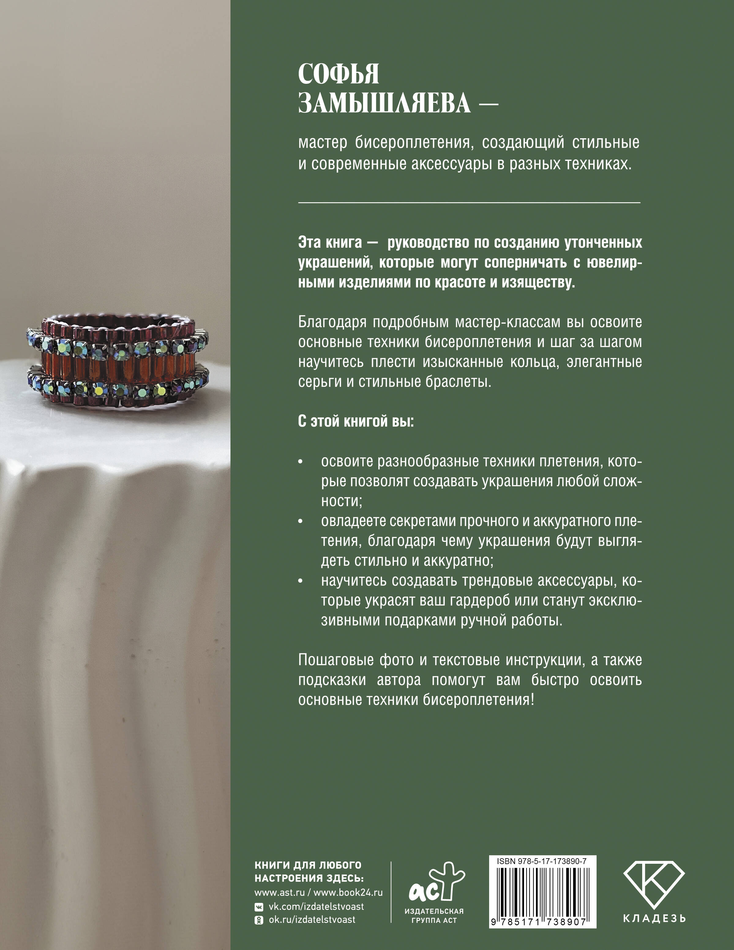 Софья Замышляева - мастер бисероплетения, создающий стильные и современные аксессуары в разных техниках. Эта книга - руководство по созданию утонченных украшений, которые могут соперничать с ювелирными изделиями по красоте и изяществу. Благодаря 7 подробным мастер-классам вы освоите основные техники бисероплетения и шаг за шагом научитесь плести изысканные кольца, элегантные серьги и стильные браслеты. С этой книгой вы: • освоите разнообразные техники плетения, которые позволят создавать украшения любой сложности; • овладеете секретами прочного и аккуратного плетения, благодаря чему украшения будут выглядеть стильно и аккуратно • научитесь создавать трендовые аксессуары, которые украсят ваш гардероб или станут эксклюзивными подарками ручной работы. Пошаговые фото и текстовые инструкции, а также подсказки автора помогут вам быстро освоить основные техники бисероплетения!| Издательство | Издательство "АСТ" |