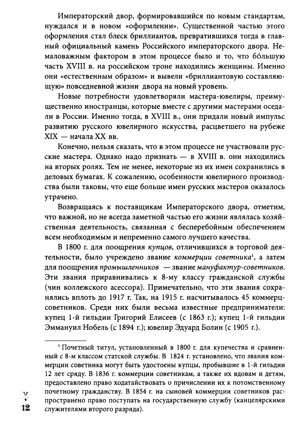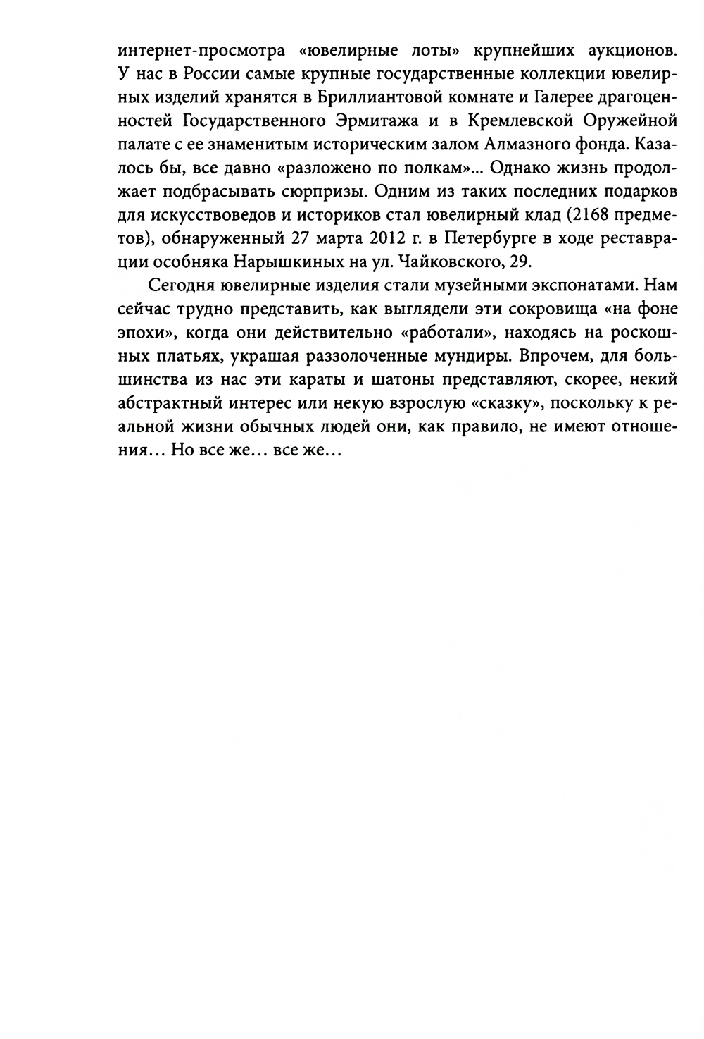 Сияние бесчисленных драгоценных камней на протяжении столетий было «визитной карточкой» Российского императорского двора. Все мемуаристы, особенно иностранцы, в один голос писали о ювелирном блеске, бывшем неотъемлемой частью парадных церемоний. Ослепительное сверкание бриллиантов, матовое мерцание золота и благородного серебра, жемчужные россыпи, смарагды и яхонты - вся эта роскошь ждет читателя на страницах книги. Вы прочтете о ювелирных «брендах» и ювелирах-поставщиках императорского двора, ювелирных наградах и подарках и даже о кражах в императорских резиденциях. Вас ждут реальные документы с описью коронных бриллиантов, ювелирные альбомы Марии Федоровны и Николая II с эскизами украшений и многое другое. Книга построена на архивных документах, и поэтому авторы надеются, что читатели сумеют открыть для себя новые страницы, связанные с удивительным миром российского ювелирного искусства.| Издательство | Центрполиграф |