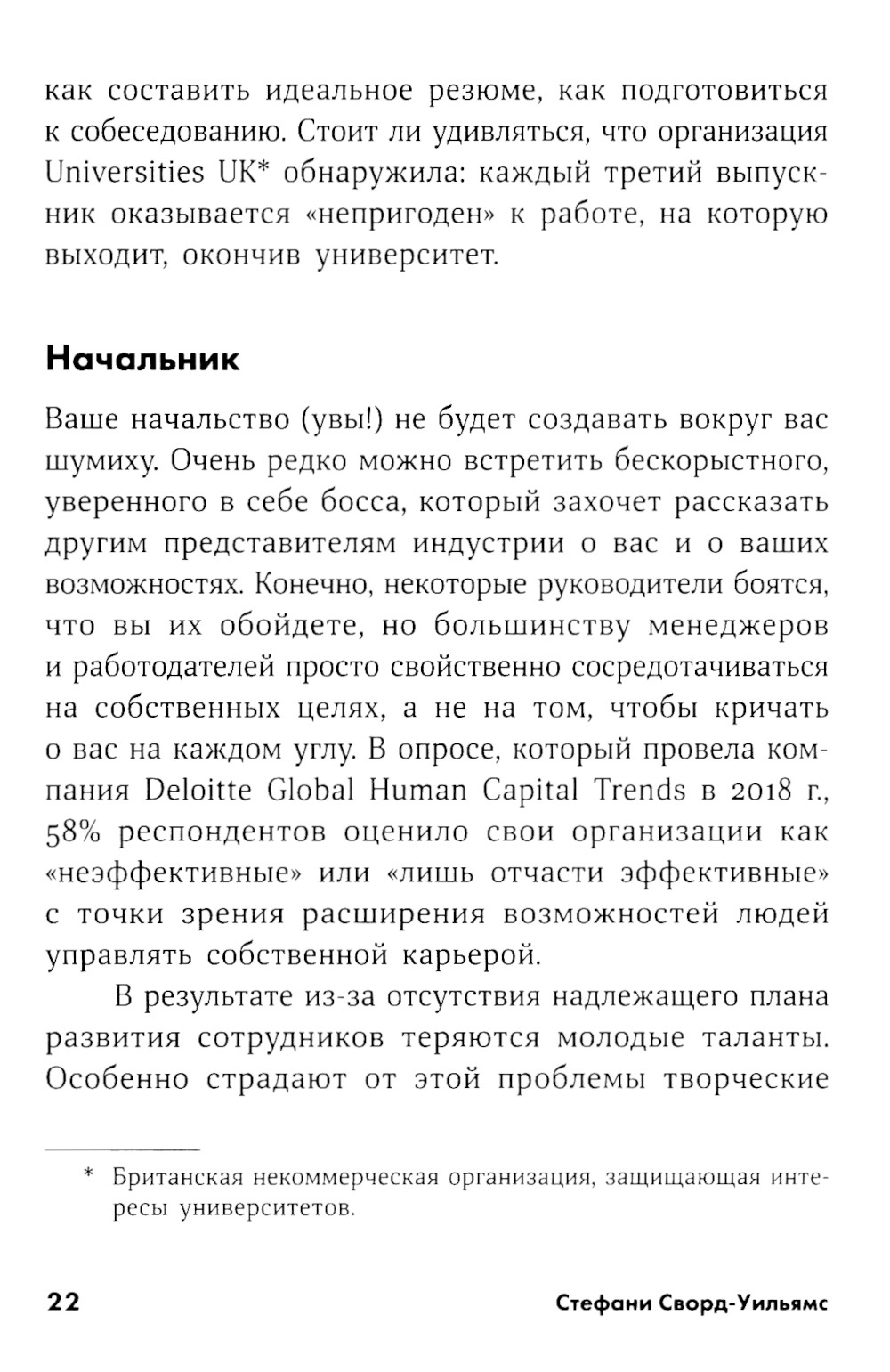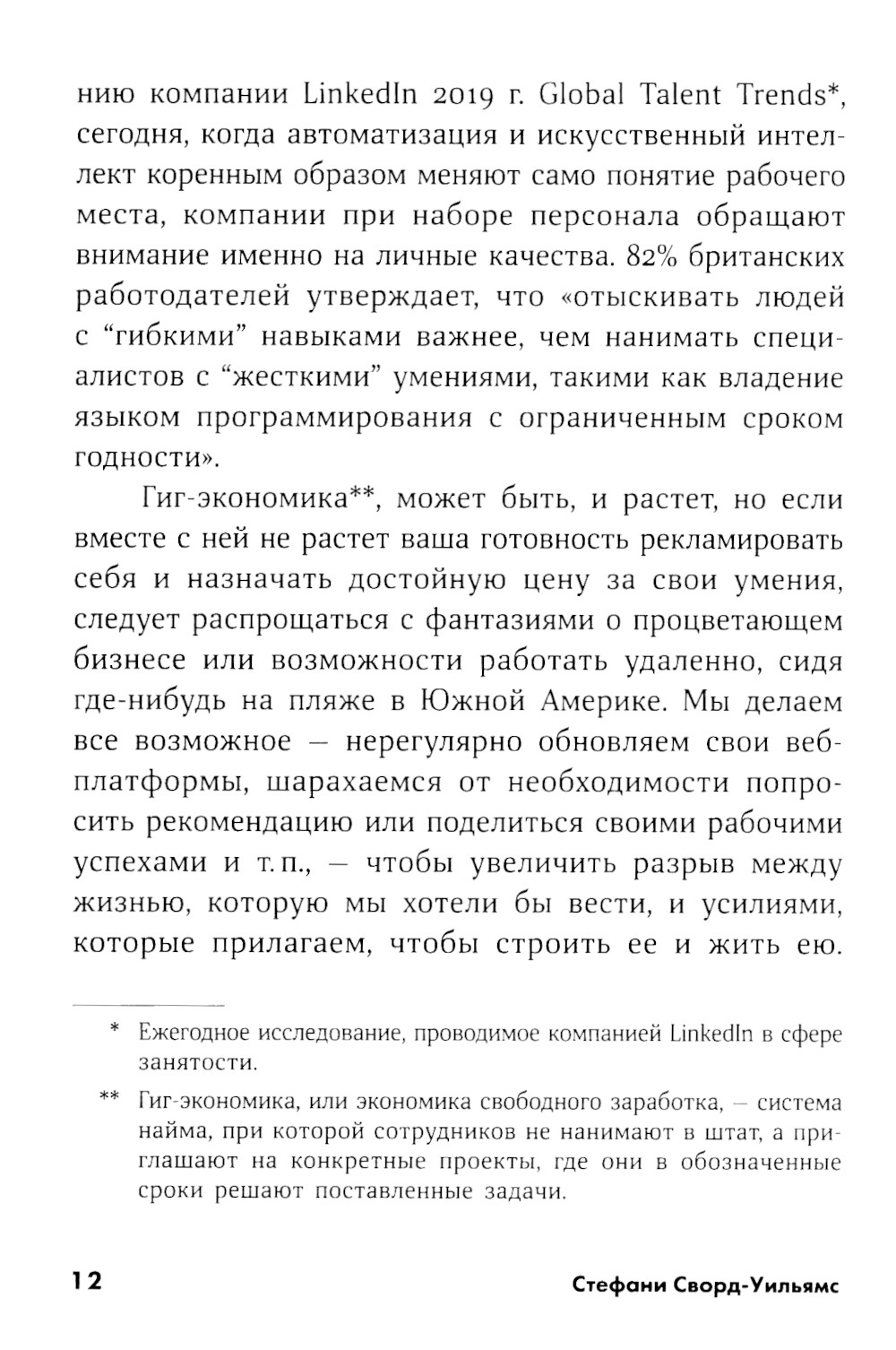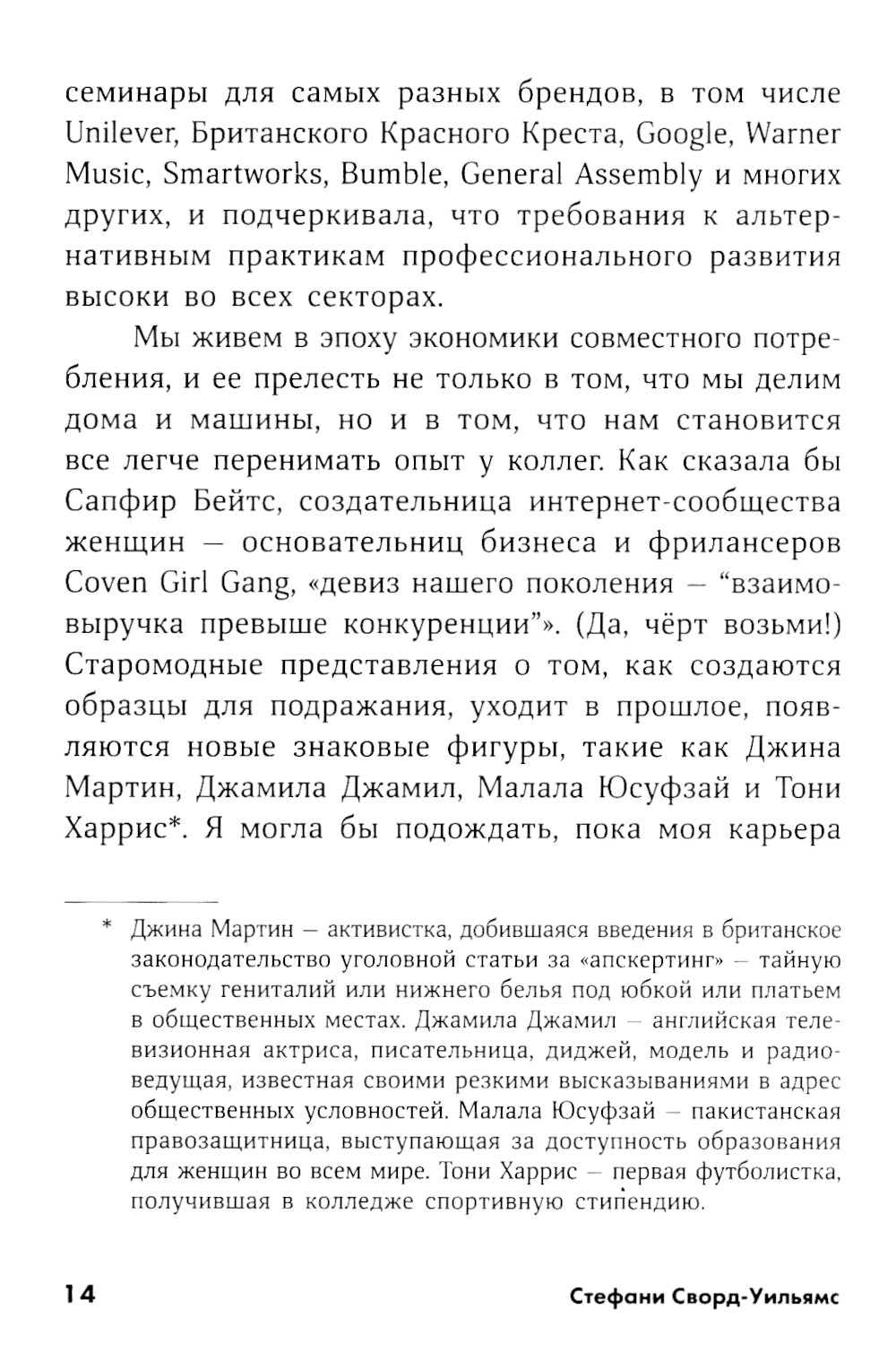 Книга адресована тем, кто стремится преодолеть застенчивость и обрести уверенность в себе. Стефани Сворд-Уильямс обучила тысячи людей во всем мире мастерству успешной самопрезентации. Следуя ее советам, выполняя несложные упражнения и смеясь над забавными (но такими поучительными!) примерами из жизни автора и ее друзей, вы научитесь составлять небанальные резюме, справляться с «трудными» боссами и коллегами и вести переговоры о деньгах. Вы осознаете пользу нетворкинга, овладеете приемами самопрезентации, поймете, что промахи смешны, а не страшны, а главное, что самореклама - не бранное слово, а полезный навык, необходимый для достижения успеха в карьере и жизни.| Издательство | Альпина Паблишер |