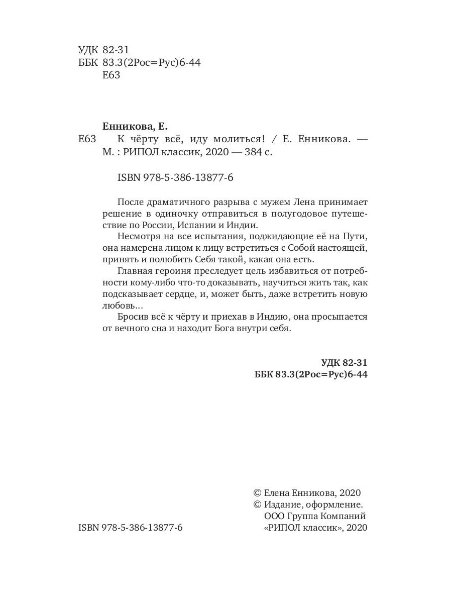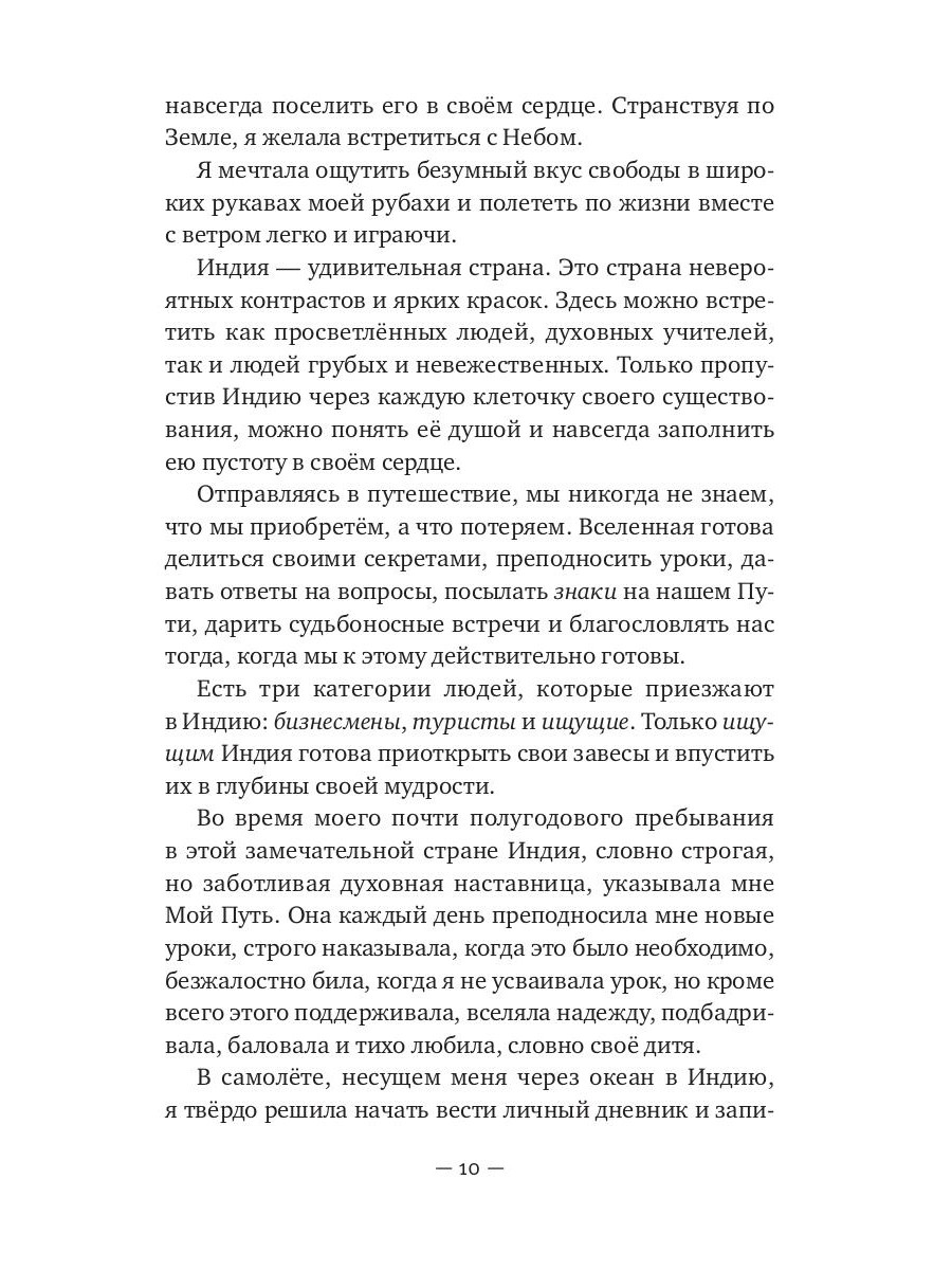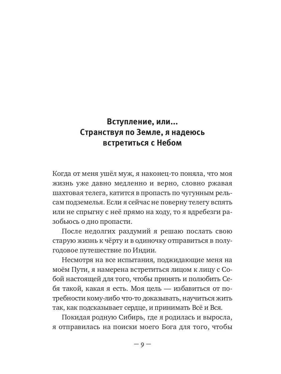 После драматичного разрыва с мужем Лена принимает решение в одиночку отправиться в полугодовое путешествие по России, Испании и Индии. Несмотря на все испытания, поджидающие её на Пути, она намерена лицом к лицу встретиться с Собой настоящей, принять и полюбить Себя такой, какая она есть. Главная героиня преследует цель избавиться от потребности кому-либо что-то доказывать, научиться жить так, как подсказывает сердце, и, может быть, даже встретить новую любовь... Бросив всё к чёрту и приехав в Индию, она просыпается от вечного сна и находит Бога внутри себя.| Издательство | Рипол Классик |