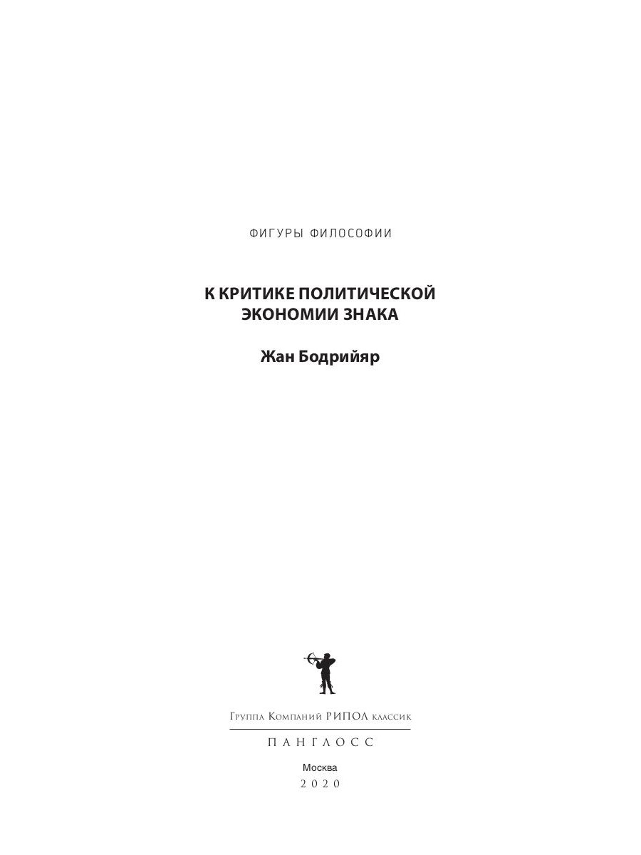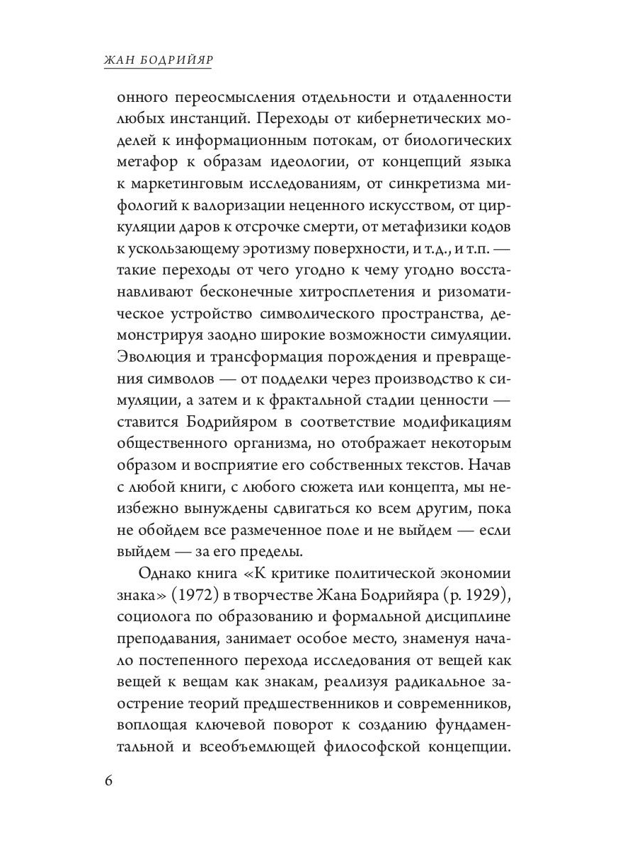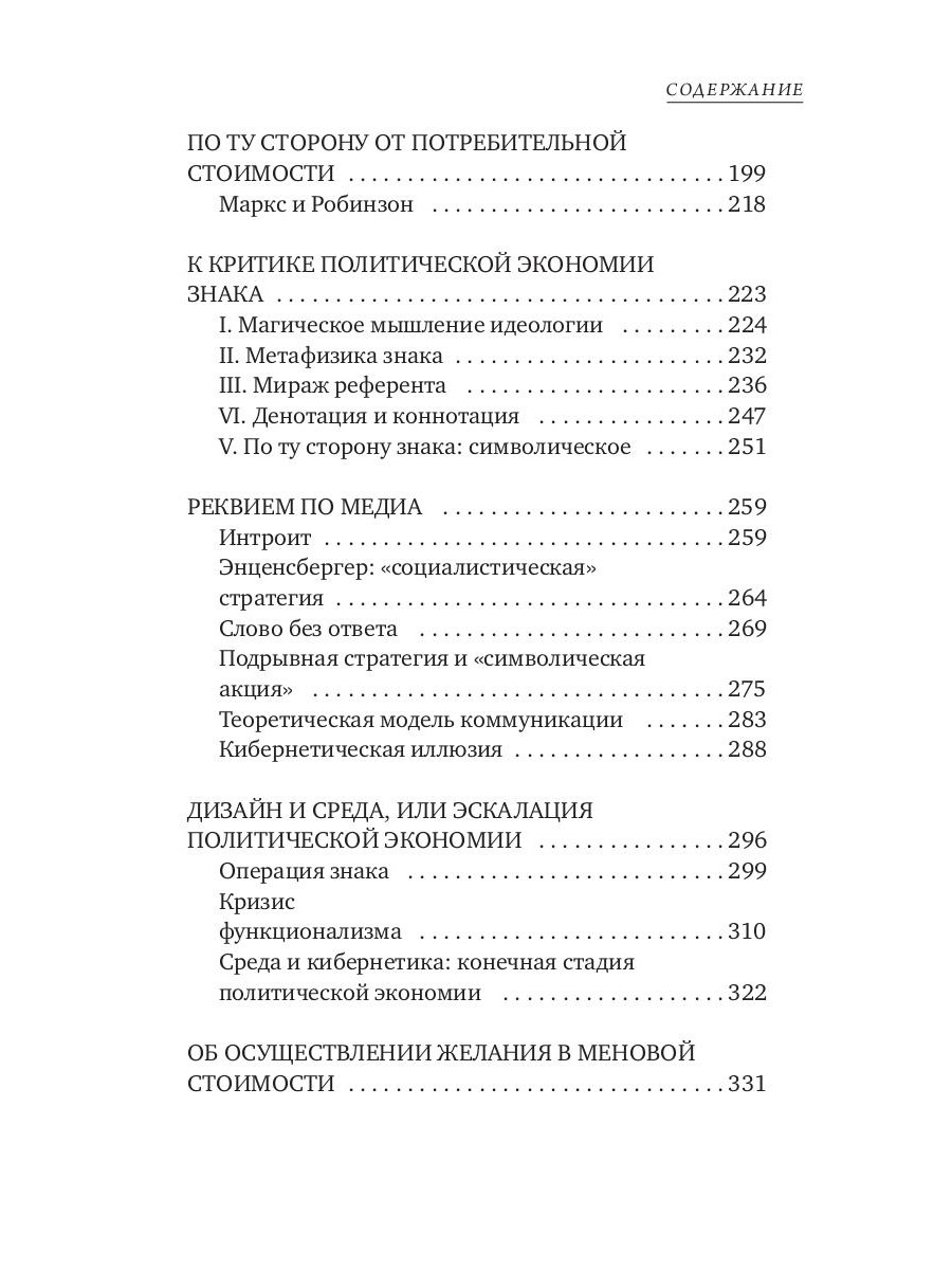 Одна из важнейших программных книг культового мыслителя Жана Бодрийяра, в которой он двигается по курсу, заданному в первых работах, но именно в «Критике политической экономии знака» происходит важнейший концептуальный поворот от рассмотрения вещей как вещей в сторону понимания вещей как знаков, тот самый угол зрения, который неразрывно связал имя Бодрийяра с термином «симулякры». Используя подходы политэкономии и маркетинга, социологии и антропологии, семиотики, искусствоведения и теории коммуникации, Бодрийяр продолжает погружаться в исследование общества потребления, искусно жонглируя структурализмом, марксизмом и фрейдизмом для того, чтобы поставить окончательный диагноз современному миру.| Издательство | Рипол Классик |