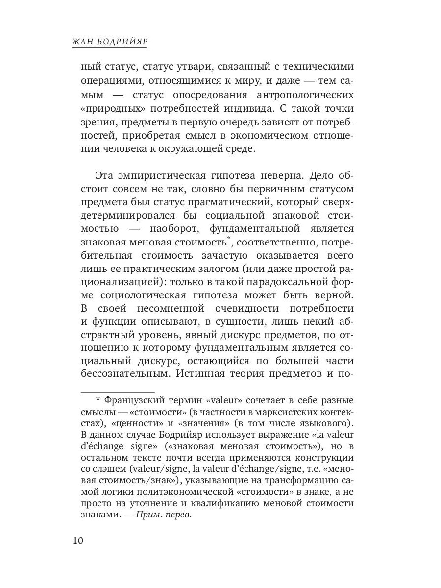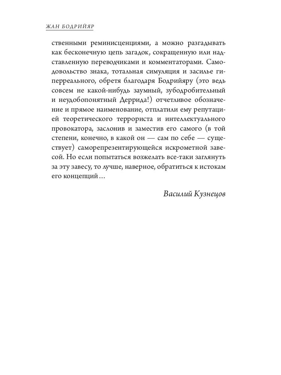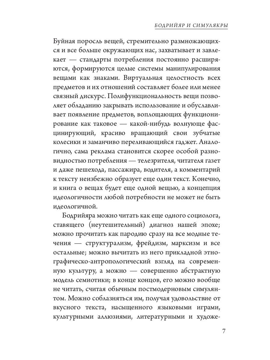 Одна из важнейших программных книг культового мыслителя Жана Бодрийяра, в которой он двигается по курсу, заданному в первых работах, но именно в «Критике политической экономии знака» происходит важнейший концептуальный поворот от рассмотрения вещей как вещей в сторону понимания вещей как знаков, тот самый угол зрения, который неразрывно связал имя Бодрийяра с термином «симулякры». Используя подходы политэкономии и маркетинга, социологии и антропологии, семиотики, искусствоведения и теории коммуникации, Бодрийяр продолжает погружаться в исследование общества потребления, искусно жонглируя структурализмом, марксизмом и фрейдизмом для того, чтобы поставить окончательный диагноз современному миру.| Издательство | Рипол Классик |