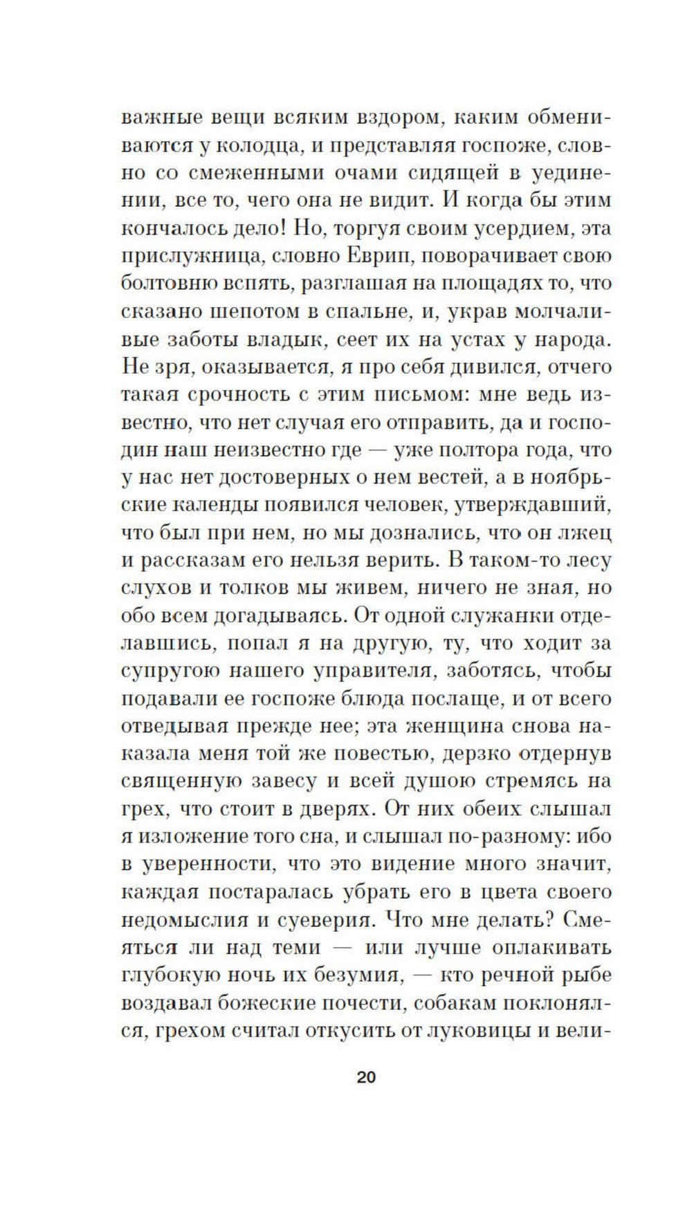 Франция, конец XII века. Замковый священник, молодой и честолюбивый, пишет письма давно умершим латинским писателям, щеголяя риторическим искусством и рассказывая о том, что ежедневно происходит в замке и с ним самим. Между тем внезапно возвращается господин замка, давно уже принявший крест и уехавший в Палестину. Оказалось, что его путешествие пошло совсем не так, как замышлялось, что до Палестины он не добрался, а побывал в совсем других краях, где не стяжал военной славы, более того - вернувшись домой, привез с собой таинственное зло, от которого трудно отвязаться... «К отцу своему, к жнецам», на первый взгляд классический эпистолярный роман, на самом деле, тонкая стилизация, в которой есть место и по-настоящему драматическим событиям, и безудержному смеху, и загадкам истории.| Издательство | Азбука |