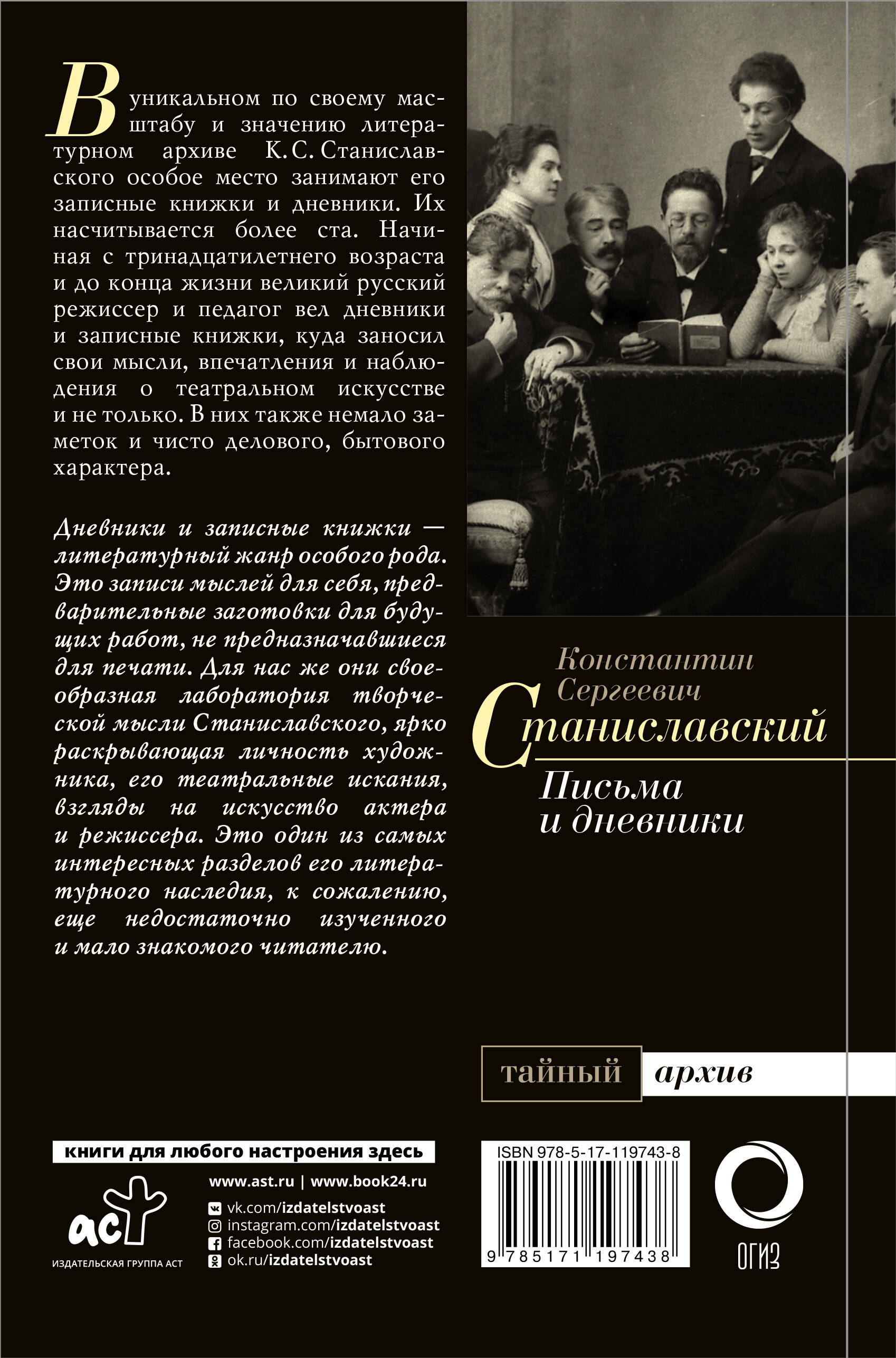 Дневники К.С. Станиславского - один из самых интересных разделов его литературного наследия, к сожалению, еще недостаточно изученного и мало знакомого читателю. Это своеобразная лаборатория творческой мысли знаменитого театрального деятеля, ярко раскрывающая его личность и театральные искания, его взгляды на искусство актера и режиссера.| Издательство | ИЗДАТЕЛЬСТВО "АСТ" |