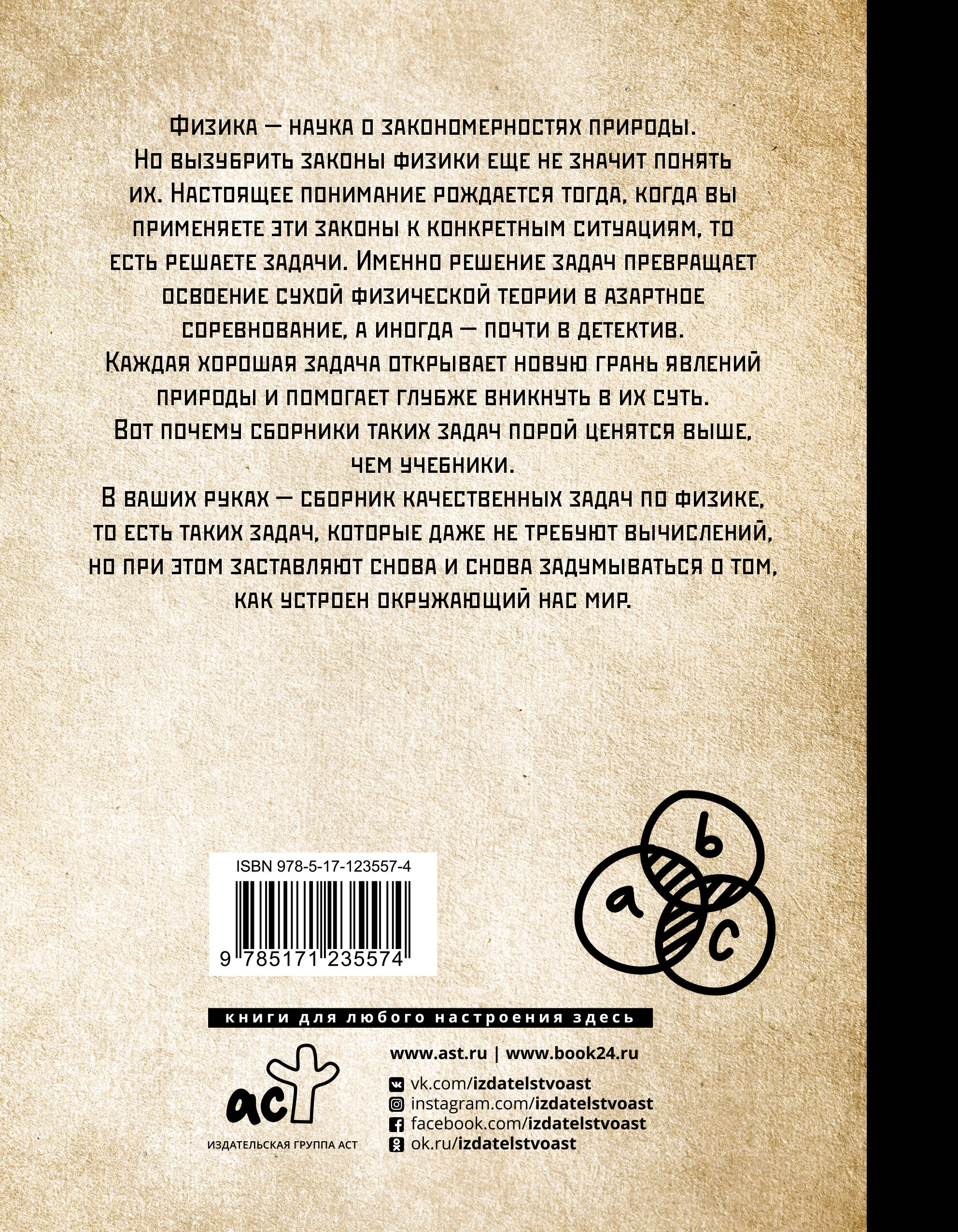 Физика - наука о закономерностях природы. Но вызубрить законы физики еще не значит понять их. Настоящее понимание рождается тогда, когда вы применяете эти законы к конкретным ситуациям, то есть решаете задачи. Именно решение задач превращает освоение сухой физической теории в азартное соревнование, а иногда - почти в детектив. Каждая хорошая задача открывает новую грань явлений природы и помогает глубже вникнуть в их суть. Вот почему сборники таких задач порой ценятся выше, чем учебники. В ваших руках - сборник качественных задач по физике, то есть таких задач, которые даже не требуют вычислений, но при этом заставляют снова и снова задумываться о том, как устроен окружающий нас мир.| Издательство | ИЗДАТЕЛЬСТВО "АСТ" |