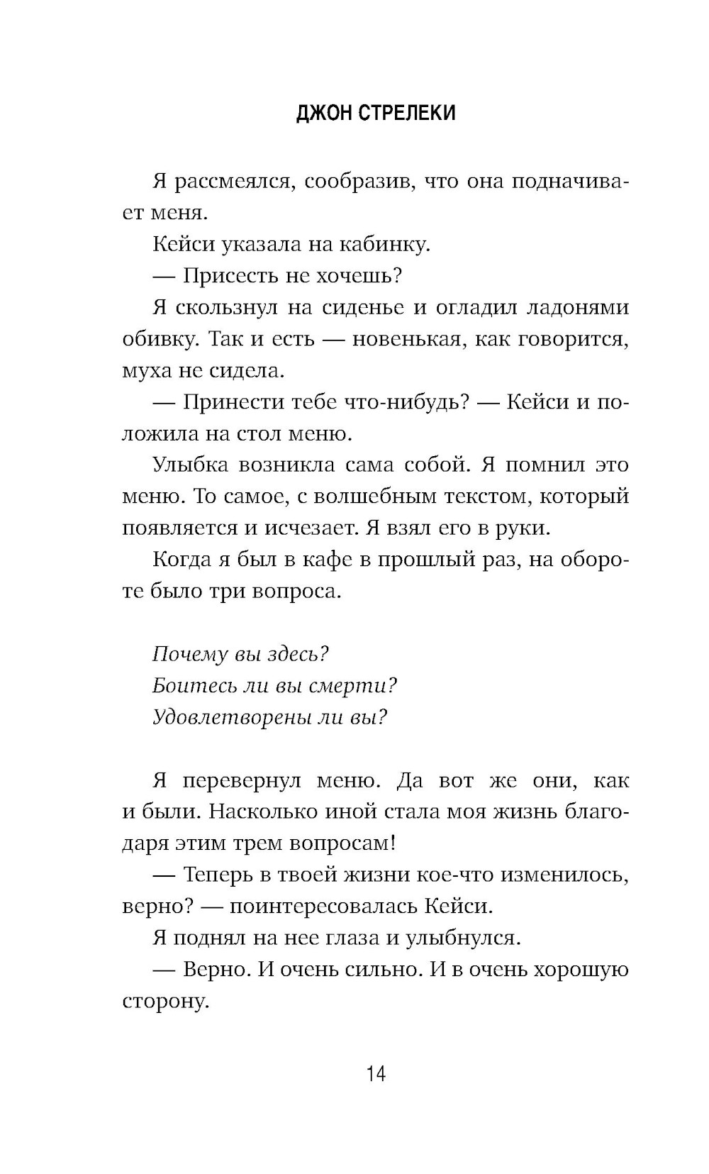Комплект из 2 книг: «Кафе на краю земли», «Возвращение в кафе» «Кафе на краю земли» Эта книга превратила бизнес-консультанта Джона П. Стрелеки в знаменитого писателя и вдохновляющего коуча. Она издана миллионными тиражами и переведена на 30 языков. Каждый из нас время от времени задает себе вопросы: «кто я?», «куда я иду?», «счастлив ли я?». Но найти ответы и следовать своему собственному пути не так-то просто. Главный герой этой книги Джон едва ли пытался осмыслить свою жизнь до того момента, как случайно оказался в загадочном кафе «Почему». Одна ночь в этом месте на краю земли заставила его задуматься о себе и осознать, что в жизни для него действительно важно и ценно. Удивительная и вдохновляющая история о том, как избавиться от мимолетной суеты современного мира, отбросить страхи и сомнения и открыться для счастливых перемен. «Возвращение в кафе» Когда жизнь скучна и тосклива, а ежедневные заботы не оставляют места радости, отправляйтесь в кафе «Почему»! Это новый роман от Джона Стрелеки, автора бестселлера «Кафе на краю земли», о том, как найти свой путь и следовать за своими желаниями. Когда-то «Почему» полностью перевернуло жизнь обычного офисного работника Джона, и теперь он вновь попадает туда, встречается с давними друзьями и учит свою новую знакомую Джессику быть счастливой. Чудесная атмосфера добра и искренности, увлекательные истории о нашей роли в этом мире и ответы на самые главные вопросы о цели жизни навсегда изменят ваше отношение к реальности и откроют путь к переменам.| Издательство | Эксмо |