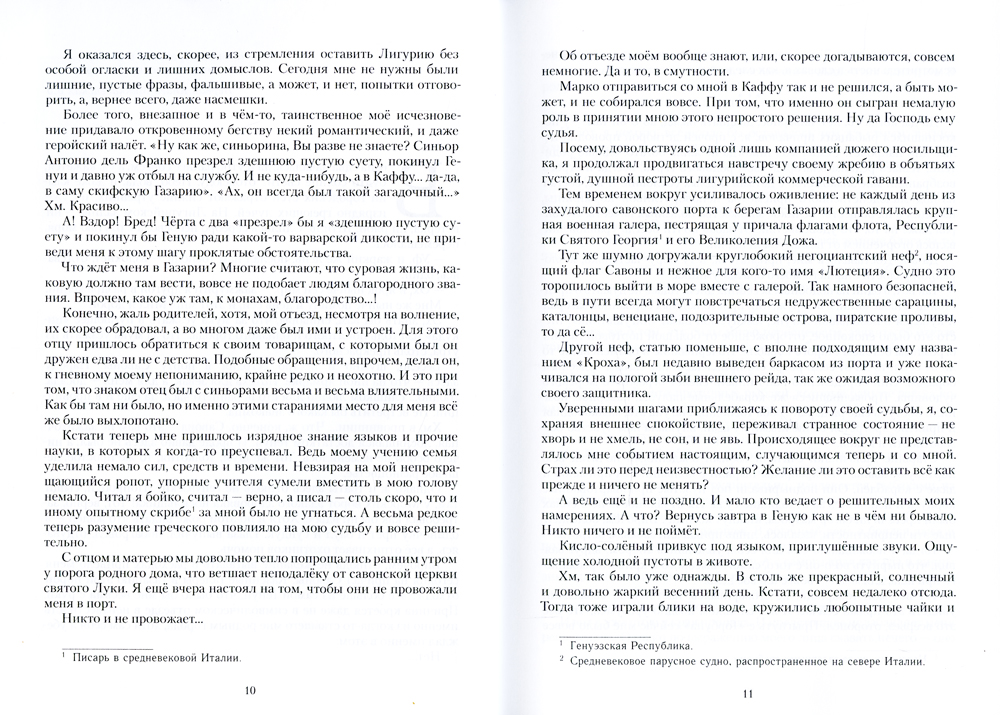 Приключенческий роман современного российского писателя Олега Морянина, действие которого происходит в средневековой Каффе (старое название Феодосии). Отпрыск благородного, но обедневшего рода, спасаясь от разного рода неприятностей, покидает родную Геную и отправляется на службу в газарийские колонии, где проходит через жизненные испытания: любовь, войну и мор, неожиданным образом влияя на обстоятельства и сам изменяясь под их бременем.| Издательство | Т8 RUGRAM |